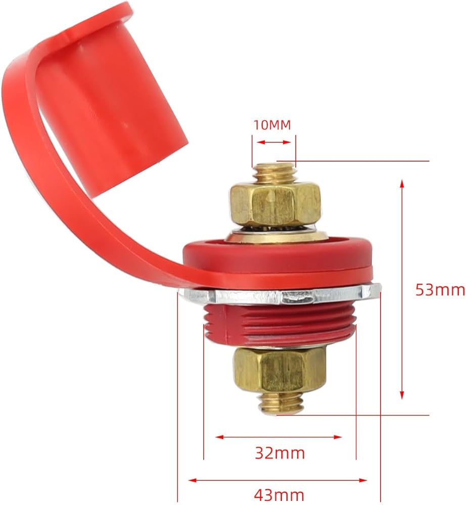 • 4.Easy to Install: Durable and high-quality material - Each heavy-duty battery terminal is made of high-quality material, made of copper core bushings and large brass nuts, which can transmit maximum power. There is a 20MM stainless steel stud on the other side of the terminal that can handle the largest battery cable lug