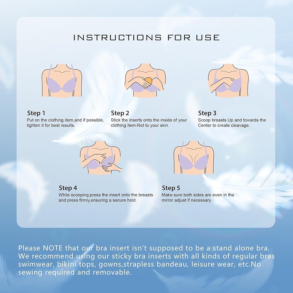 • حمالة صدر Ultra Boost Inserts: نوصي باستخدام حشوات حمالة الصدر اللاصقة الخاصة بنا مع جميع أنواع حمالات الصدر العادية، وقمصان البيكيني، وملابس السباحة، والعباءات، والعصابات بدون حمالات، والفساتين، والملابس الترفيهية، وما إلى ذلك. لا حاجة للخياطة وقابلة للإزالة.