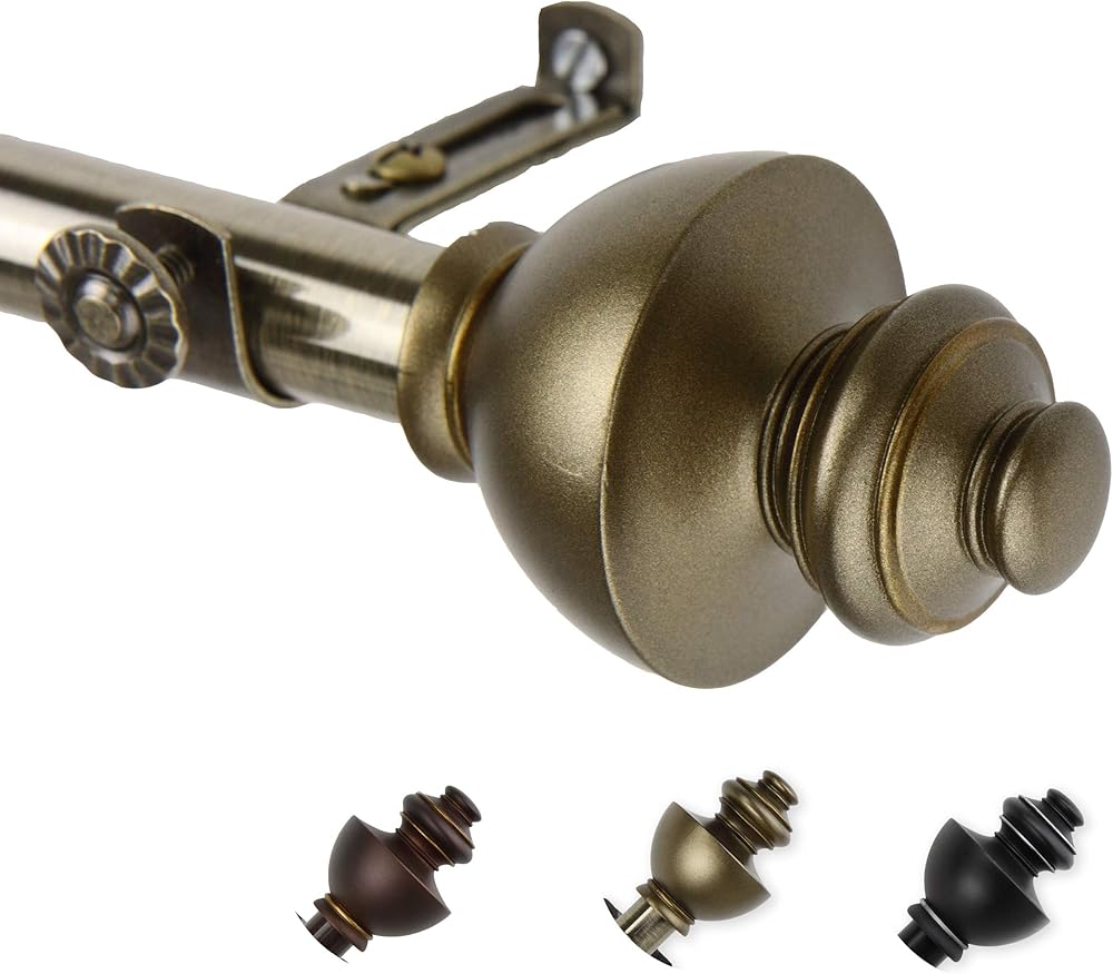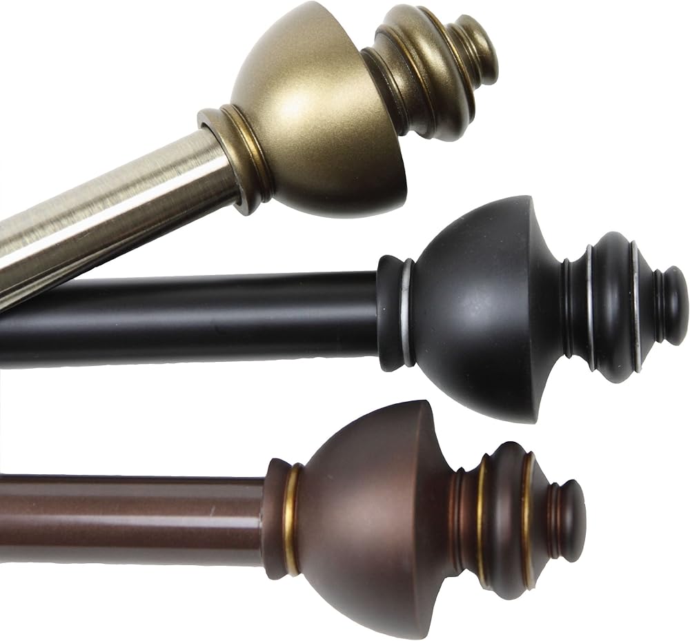 This Dynasty curtain rod includes one 66-120 inch adjustable rod, two finials, three brackets and mounting hardware