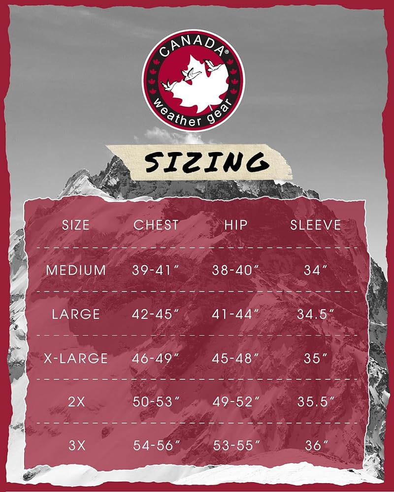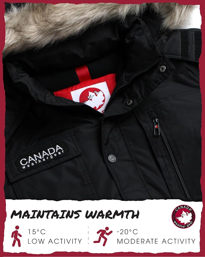 HEAVYWEIGHT PROTECTION: This Canada Weather Gear men's parka is designed for the most extreme winter conditions. The heavyweight construction, combined with durable Taslon fabric and a PVC coating, provides unparalleled protection against the cold. Stay warm and shielded from harsh weather with this robust winter jacket.