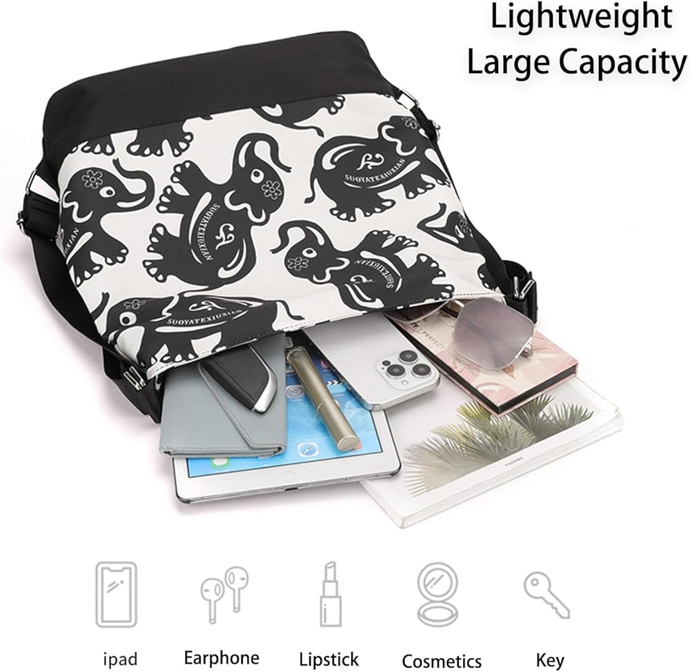 • Multi-purpose- This women shoulder bag is very fashionable and elegant, with personalized design, equipped with elephant pattern, very beautiful. Adjustable strap design allows this large capacity bag to be used as a shoulder bag, crossbody bag, handbag, backpack and so on. Meet your various daily use needs.