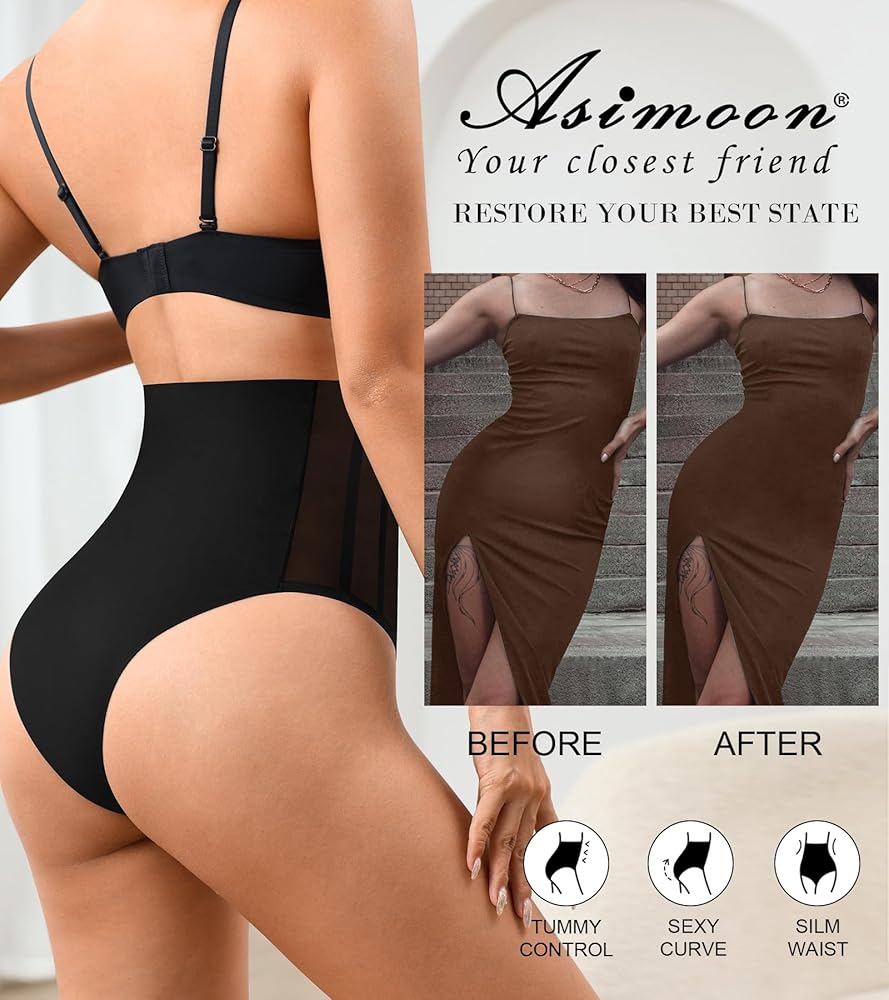 ASIMOON Shapewear for Women High Waisted Tummy Control Bikini Underwear Soft Mesh Body Shaper Slim High Cut Girdle PantiesTummy Control Women's Shapewear
