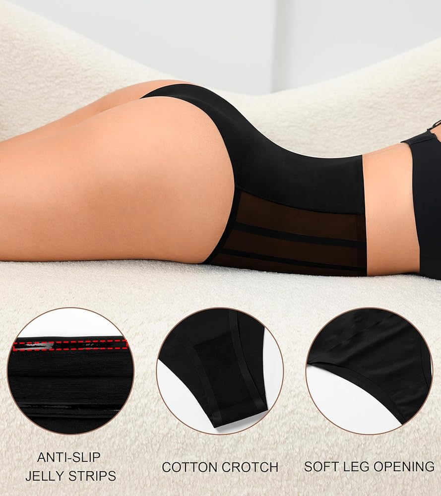 The waistband features non-slip jelly strips that keep the panties in place, non slipping or rolling. Stay comfortable and secure whether you're walking, sitting, or standing.