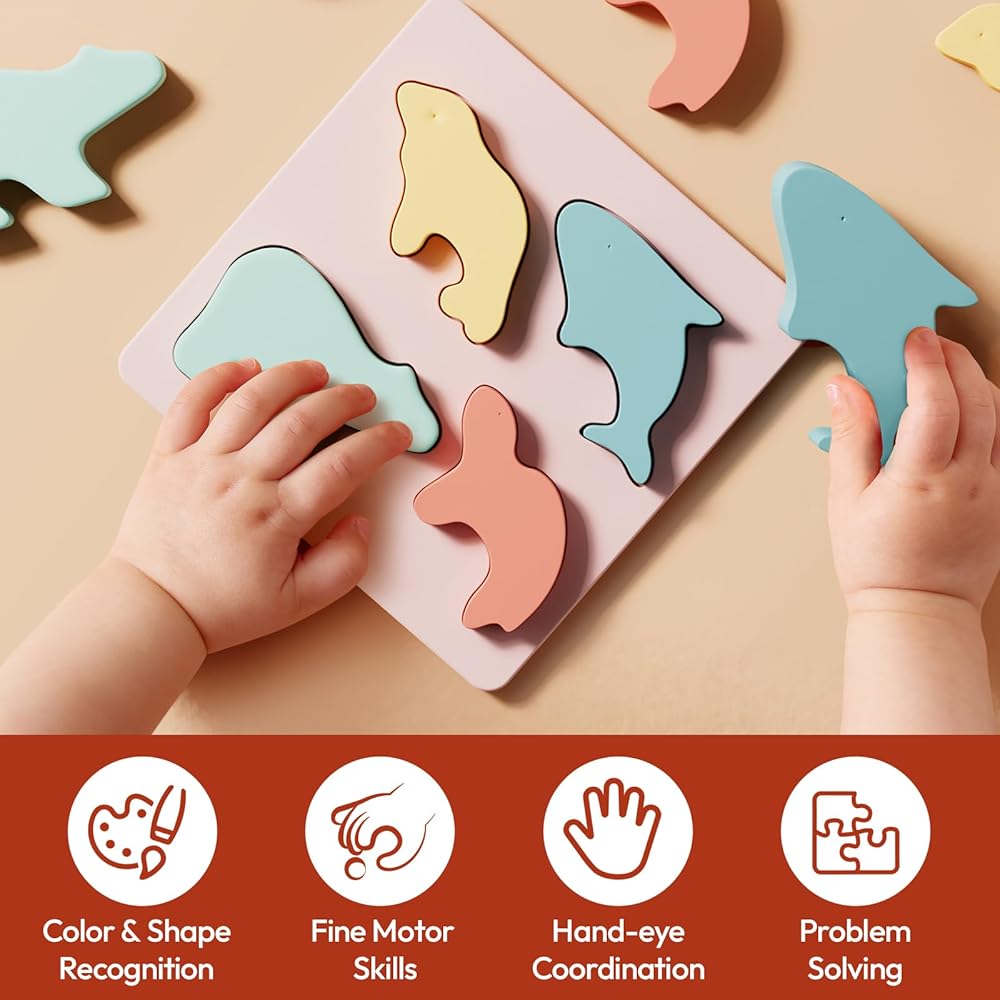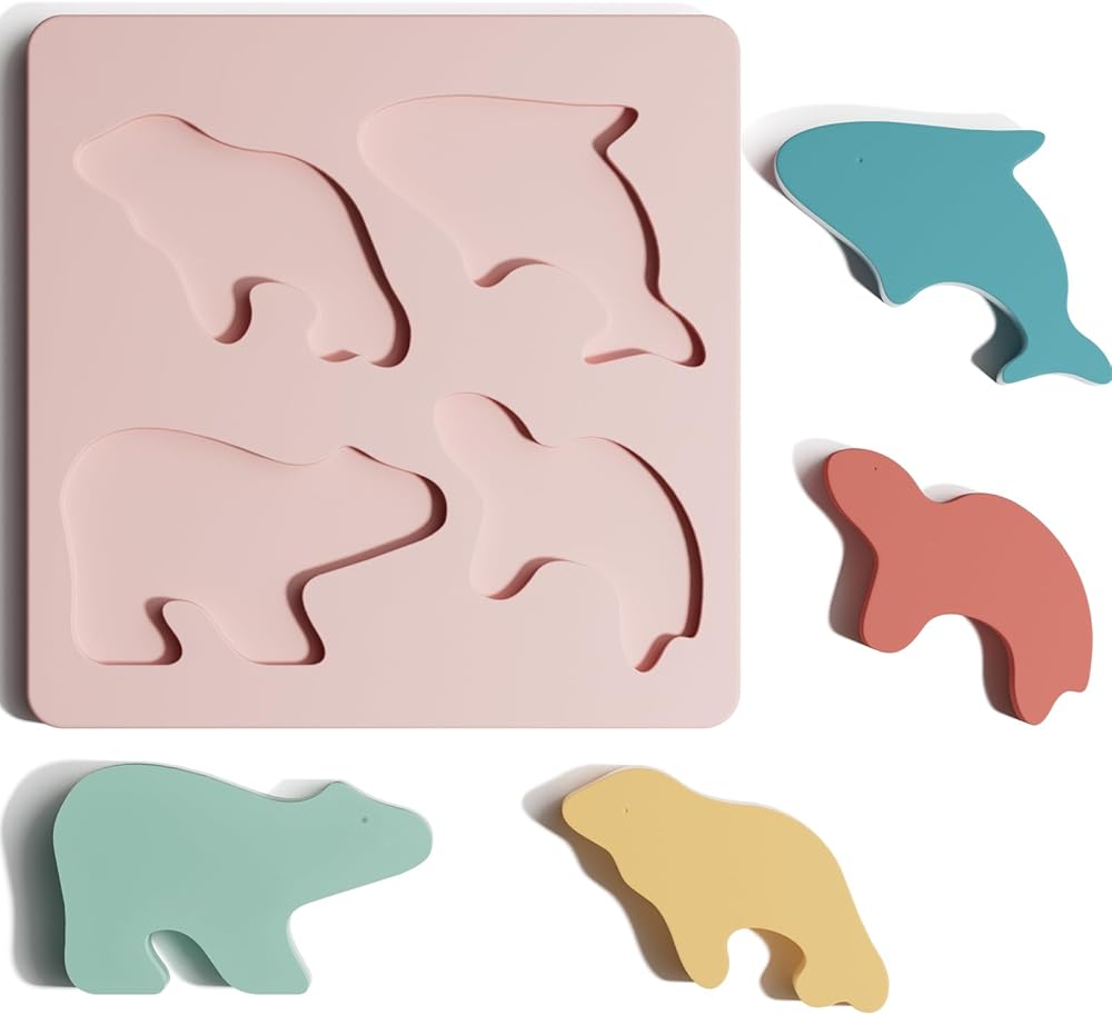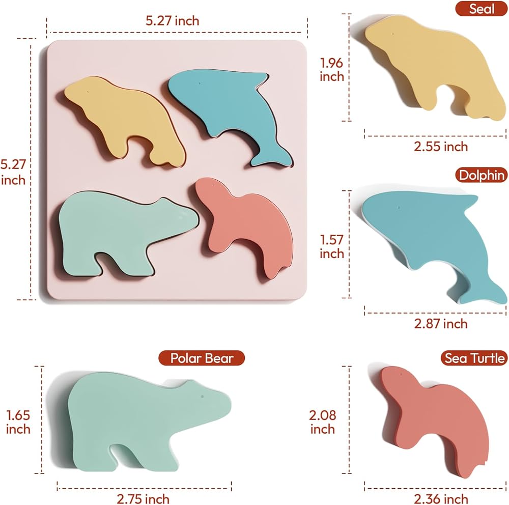 🐬تصميم لطيف وممتع: لعبة أحجية الحيوانات المصنوعة من السيليكون الناعم تحتوي على 4 أشكال حيوانات، بما في ذلك قطع أحجية الدب القطبي/الختم/الدلافين/السلحفاة. تصميم مميز للهيكل والحيوان، يسهل مراقبة الطفل.
