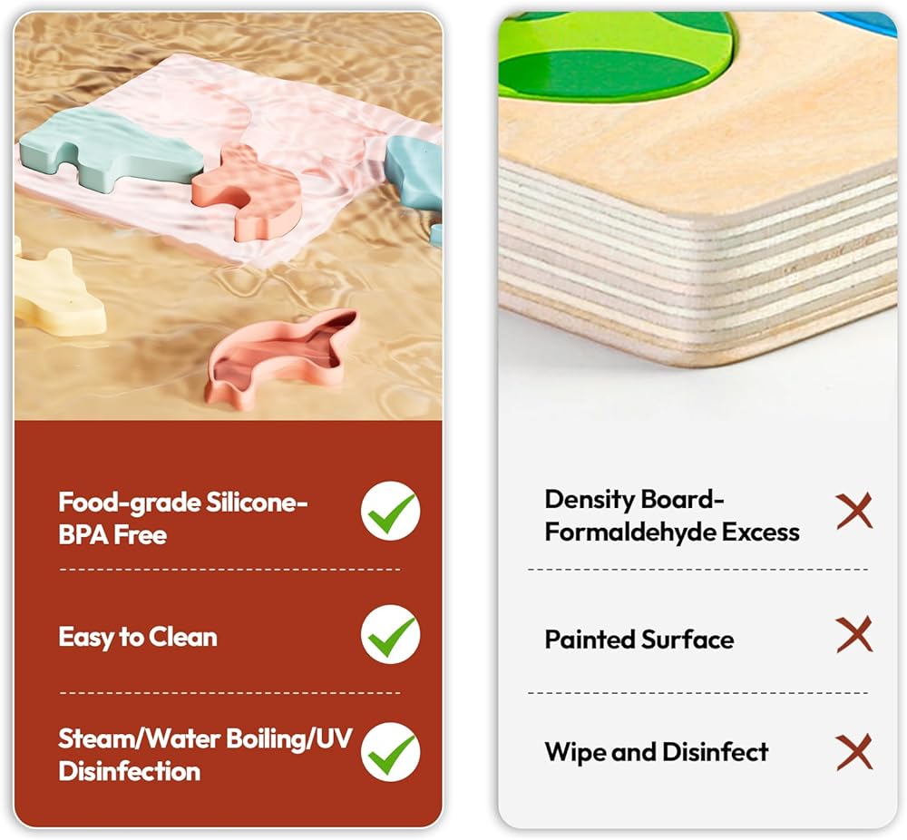 🐬【تنظيف بدرجة حرارة عالية】 نطاق درجة حرارة المادة هو -4 درجة فهرنهايت ~ 92 درجة فهرنهايت، ويمكن غليها، بالبخار، وتنظيفها بالأشعة فوق البنفسجية. النظافة مضمونة، أفضل من الألعاب الخشبية المطلية.