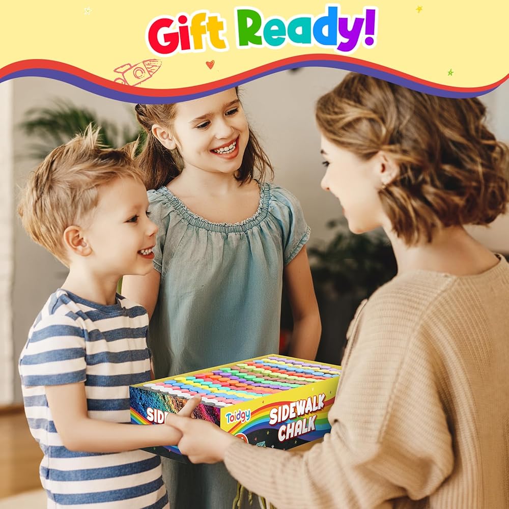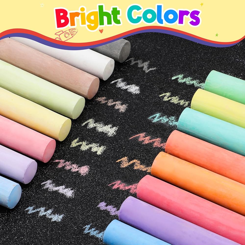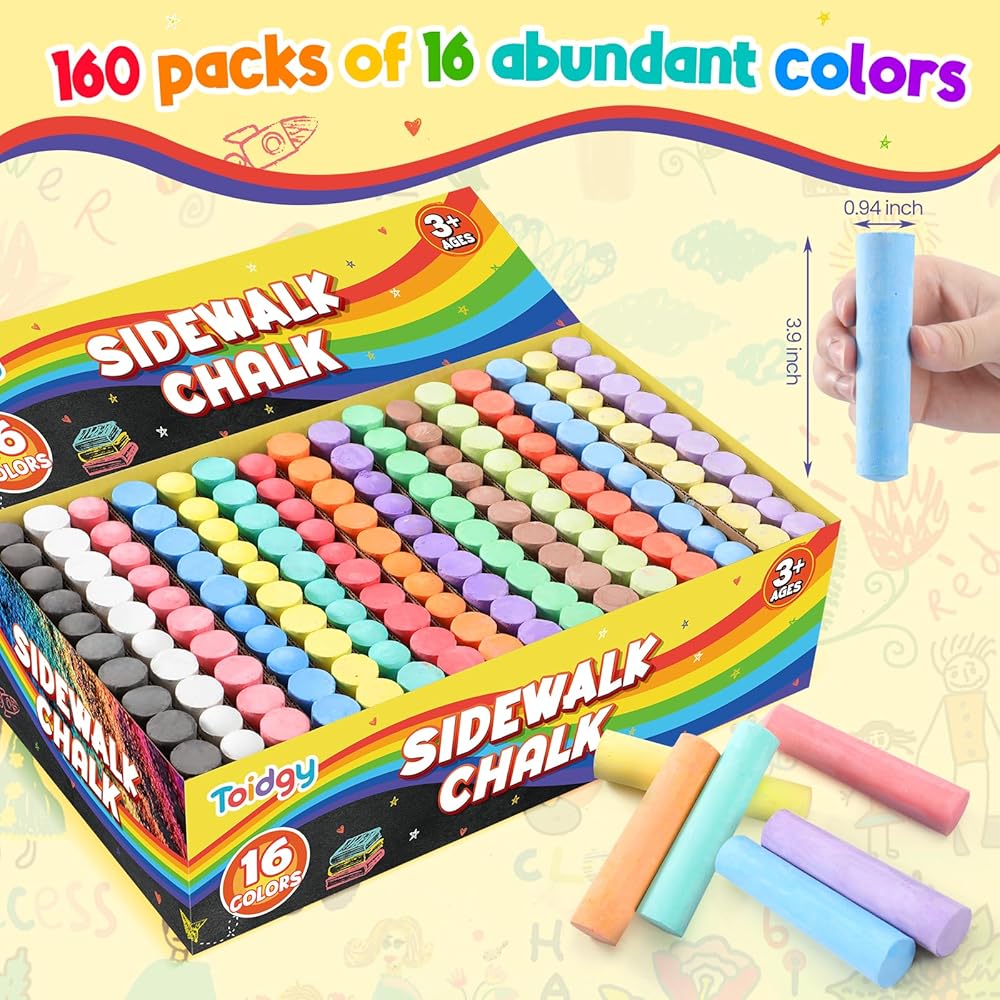 • مجموعة الطباشير الكبيرة ذات القيمة الرائعة: مجموعة الطباشير الكبيرة القابلة للغسل تأتي مع 160 قطعة في 16 لونًا ساطعًا، كل طباشير سيعطي لونًا نابضًا بالحياة على أي ممر أو رصيف، مما يجعلها خيارًا رائعًا لأي طفل يحب إنشاء لوحات خارجية لافتة للنظر واللعب الفني!