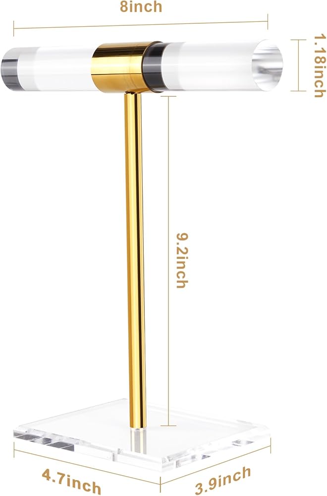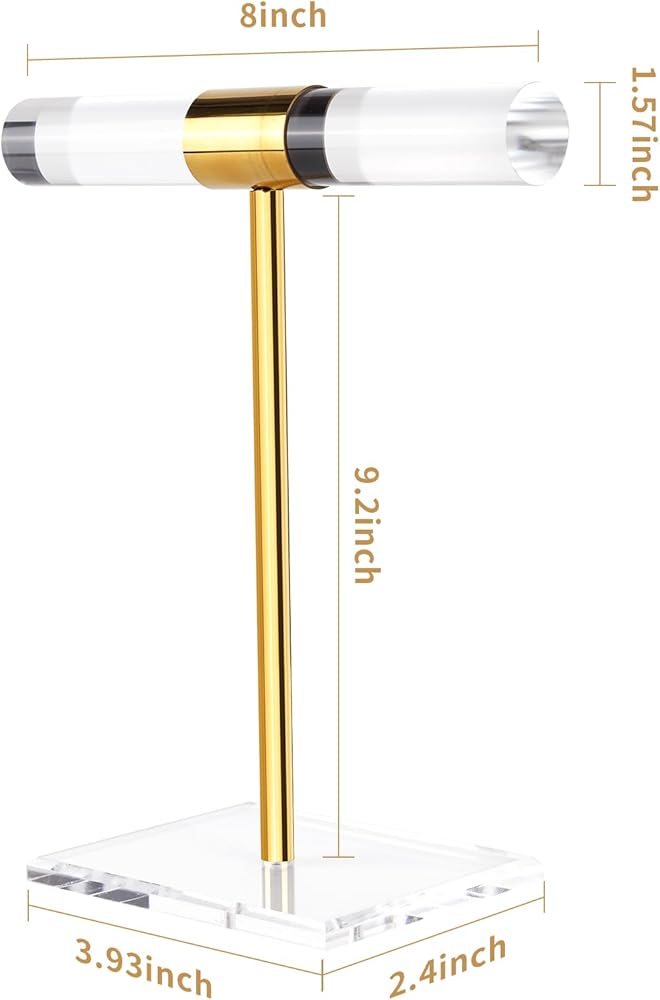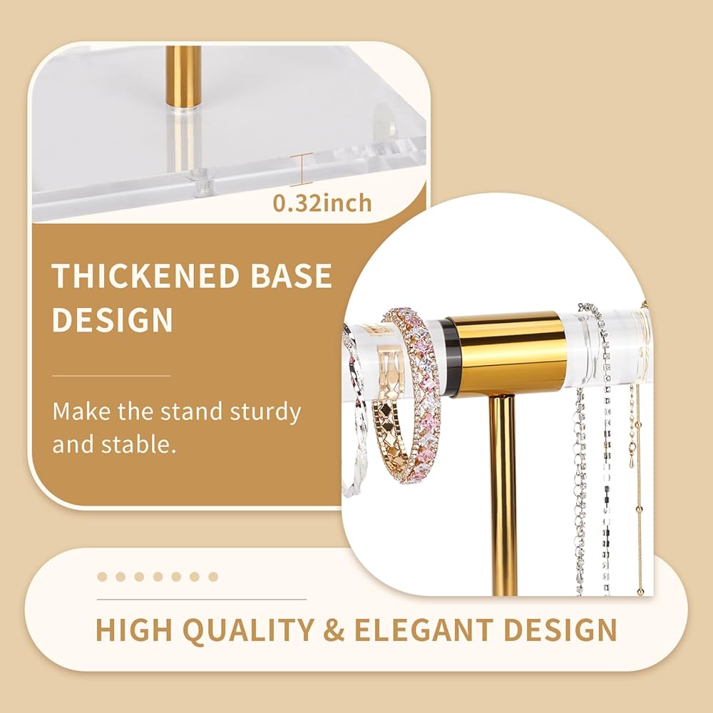 • قوي في الاستخدام: يتميز حامل القلادة والسوار الخاص بنا بتصميم على شكل حرف T يحافظ على عرض جميع مجوهراتك في لمحة. مصنوع من المعدن الفاخر والأكريليك الشفاف، حامل القلادة خفيف الوزن ومتين في الاستخدام. قاعدة سميكة تضمن ثباتًا ثابتًا. أن الحامل ليس من السهل تشويهه أو كسره.