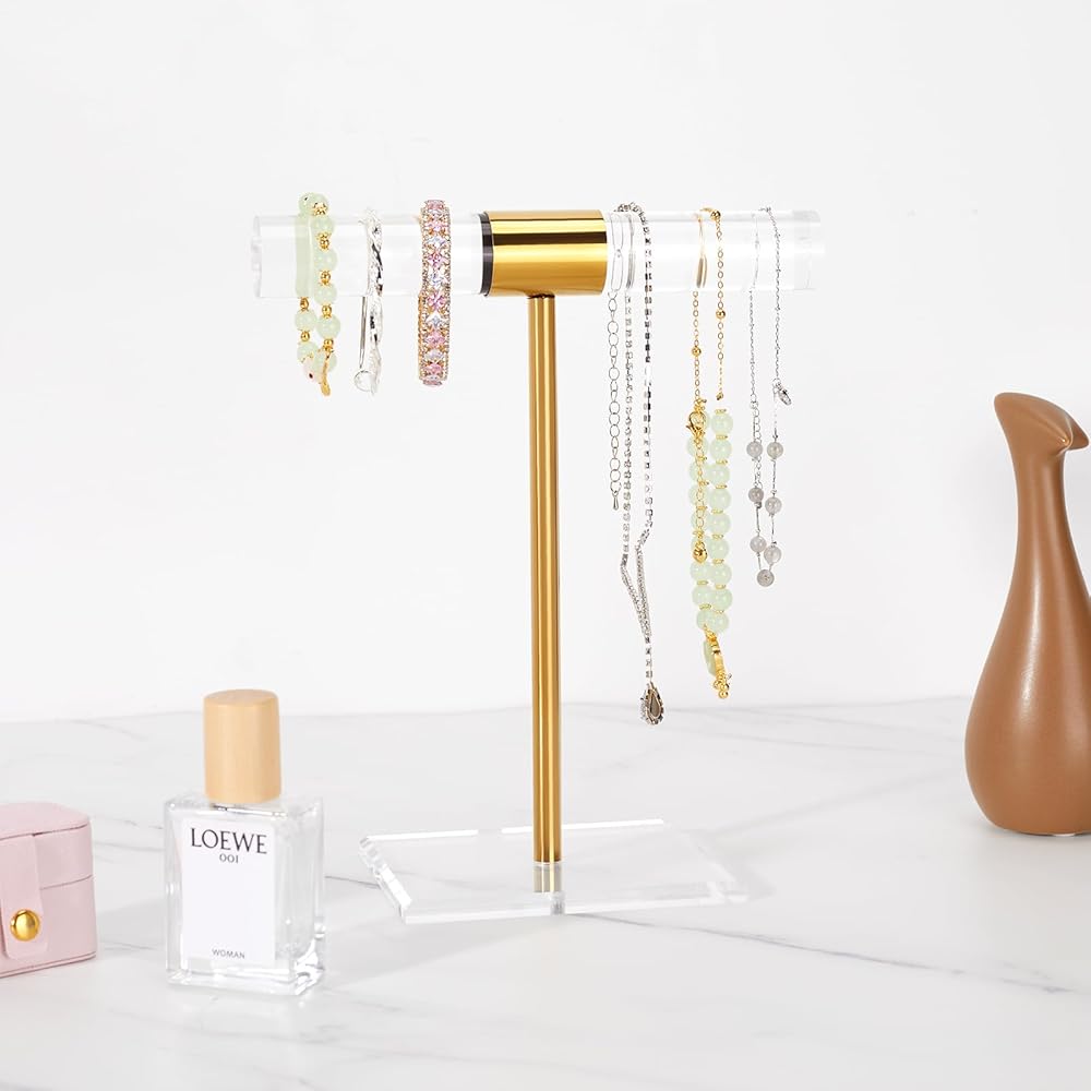 • تصميم أنيق: مزيج من الأكريليك الشفاف والمعدن الذهبي، مما يجعل حامل عرض المجوهرات يبدو بسيطًا وأنيقًا، ومناسب تمامًا لأنماط منزلية مختلفة. منظم المجوهرات هو حامل مثالي لعرض المجوهرات، ولا ينبغي لهواة جمع المجوهرات تفويته!