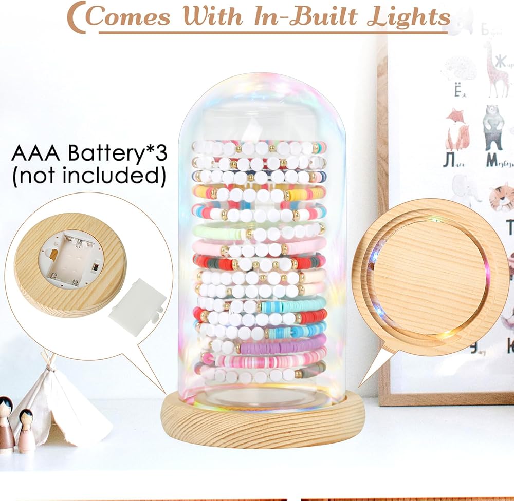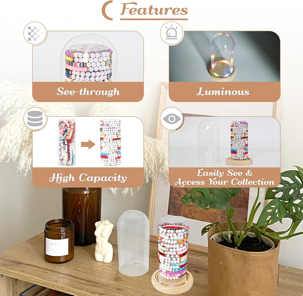 تصميم مضيء: حامل السوار الخاص بنا ليس عمليًا فحسب، بل أنيق أيضًا. تأتي مزودة بإضاءة مدمجة تضفي توهجًا ساحرًا على غرفتك، وتسلط الضوء على مجموعتك، وتعمل كقطعة ديكور ممتازة