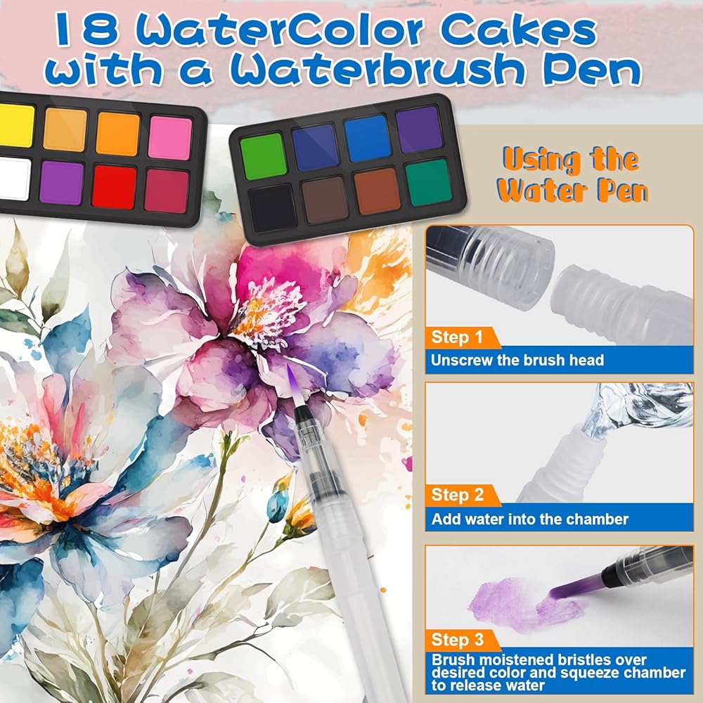 مجموعة طلاء فاخرة غير سامة: تم تركيب الألوان المائية والدهانات الأكريليكية باستخدام مكونات عالية الجودة وغير سامة لضمان تجربة رسم آمنة وممتعة. تتميز الدهانات المائية بقدرات استثنائية على مزج الألوان، بينما توفر الدهانات الأكريليك لمسة نهائية غنية ومزخرفة. هذه الدهانات متعددة الاستخدامات ستزيد من استكشافك لتقنيات الرسم المختلفة.