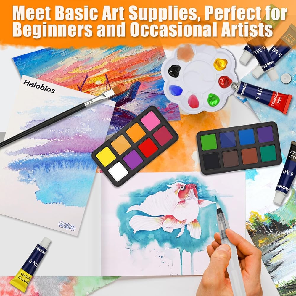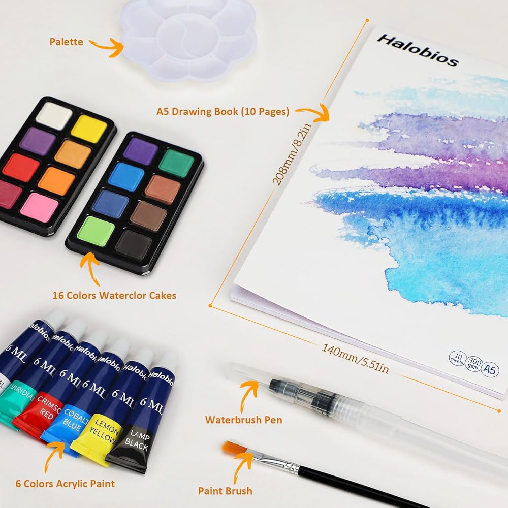 مجموعة طلاء قيمة مكونة من 22 لونًا: تحتوي مجموعة الرسم الشاملة هذه على 16 كعكة بألوان مائية، و6 طلاء أكريليك (6 مل/مرطبان)، وكتاب رسم A5 (مع 10 صفحات)، وفرشاة طلاء، وقلم فرشاة مائية ولوحة ألوان. تحتوي هذه المجموعة الفنية الصغيرة على لوازم الرسم الأساسية، سواء كنت مبتدئًا يبحث عن تجربة متعة الرسم أو فنانًا عرضيًا، فإن هذه المجموعة الفنية الصغيرة توفر قيمة استثنائية مع لوازم الرسم الأساسية التي تلبي احتياجاتك الأساسية دون أي إضافات غير ضرورية.