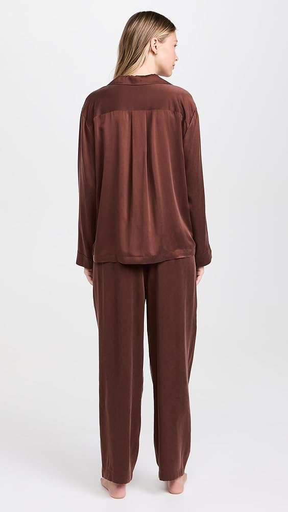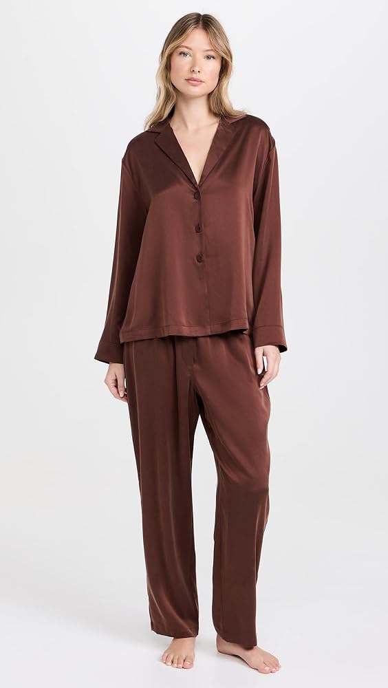 طقم سراويل نسائية طويلة الأكمام من الحرير قابل للغسل من Lunya