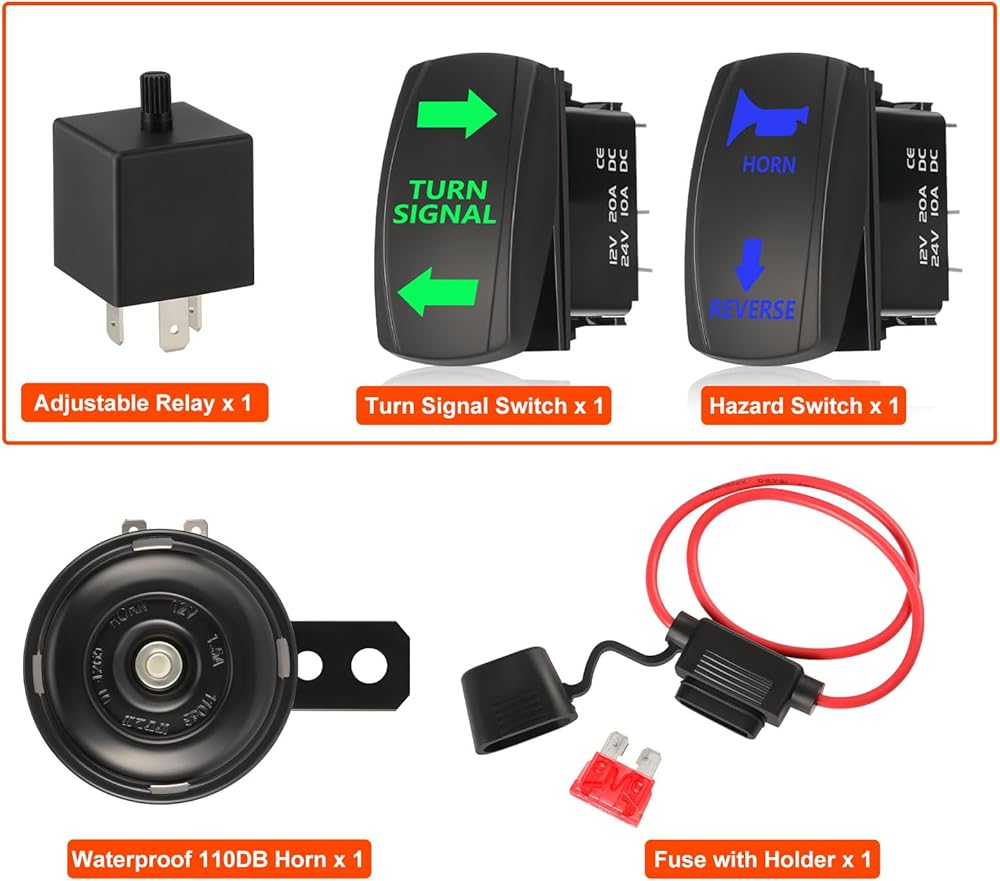 مجموعة إشارة الانعطاف ATV UTV SXS، مجموعة قانونية للشارع مع بوق عالٍ ومفتاح هزاز ومرحل مرحل وسلك مناسب لعربة الجولف Polaris RZR Ranger Xp Turbo Can-Am Kawasaki