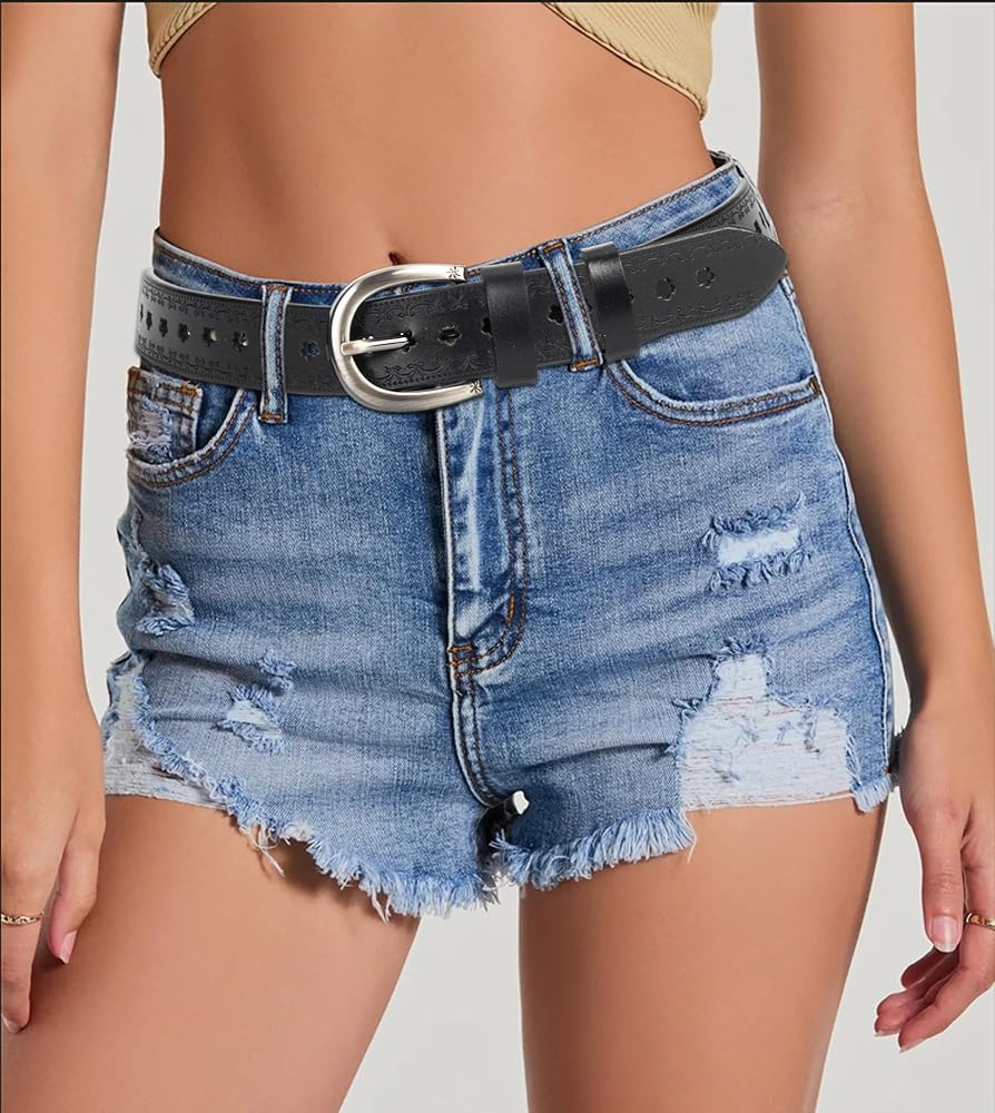 【عالي الجودة】- حزام رعاة البقر مصنوع من جلد البولي يوريثان والمعدن عالي الجودة، مزين بأنماط زهور منقوشة، كلاسيكي وجميل، إبزيم الحزام مصنوع من سبيكة الزنك عالية الجودة، موثوق بها للاستخدام لفترة طويلة، وليس من السهل أن ينكسر أو يبهت. إنه حزام جلدي مثالي للاستخدام اليومي للرجال والنساء