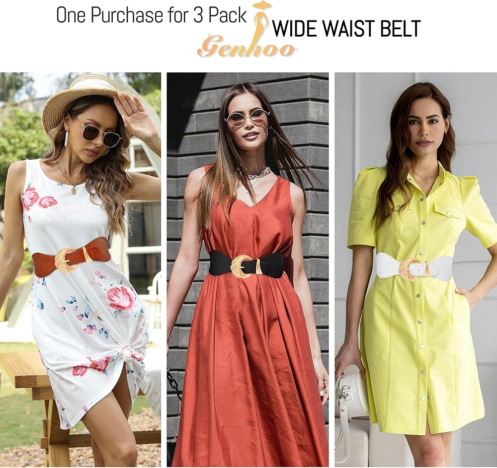 إكسسوارات الموضة: يأتي حزام الخصر هذا بثلاثة ألوان مختلفة (الأسود والبني والأبيض) وهو مناسب لملابس النساء من أي لون وأي موسم. توافق جيد مع الفساتين أو التنانير أو القمصان أو البلوزات أو السترات أو الجينز أو السترات أو البدلات أو المعاطف، إلخ