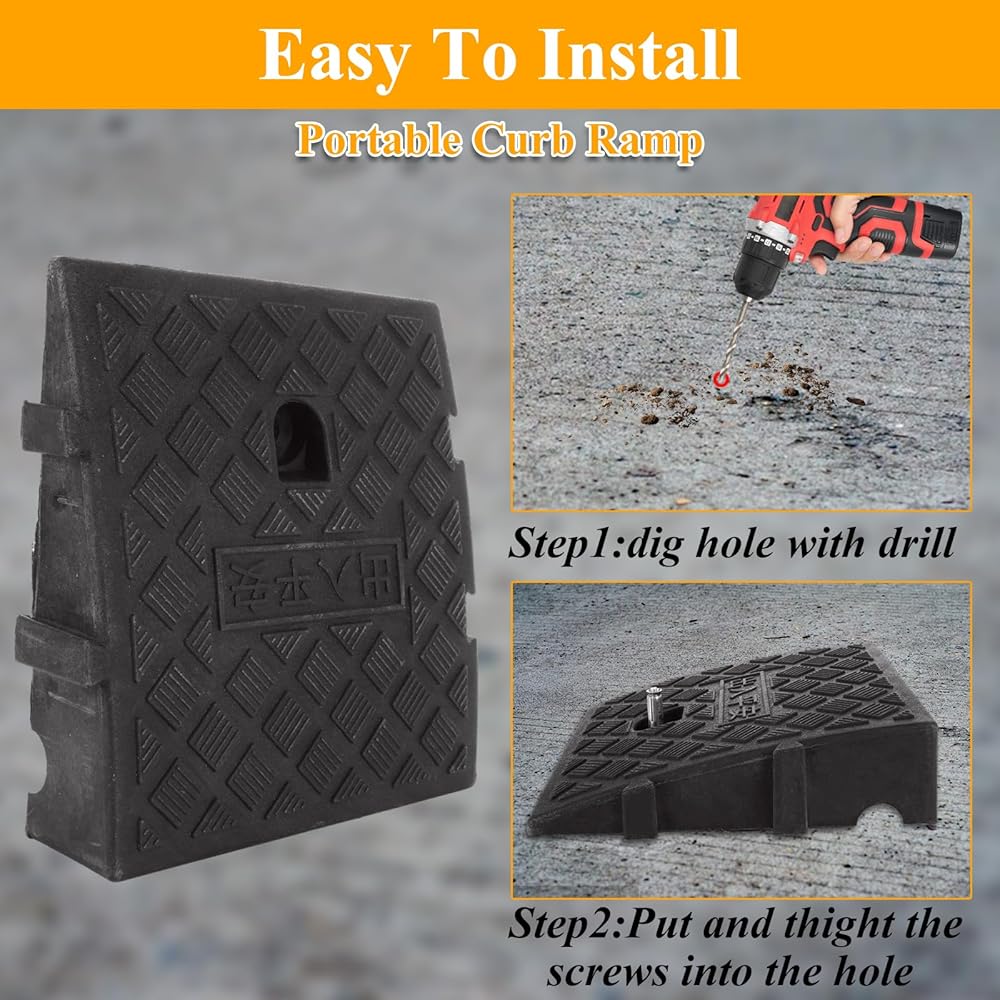 - 4 Pack Black Curb Ramp + Accessory(including rubber pad x1, expansion screw x4) x2