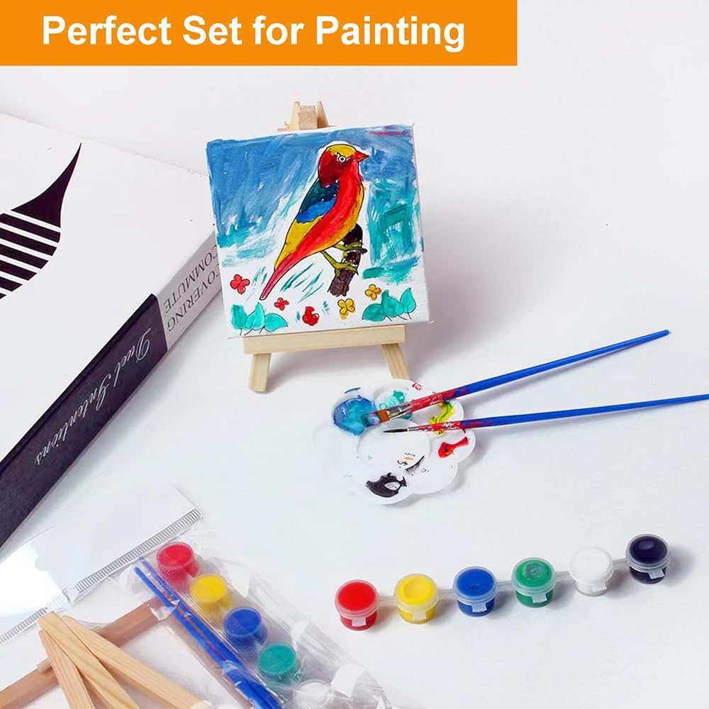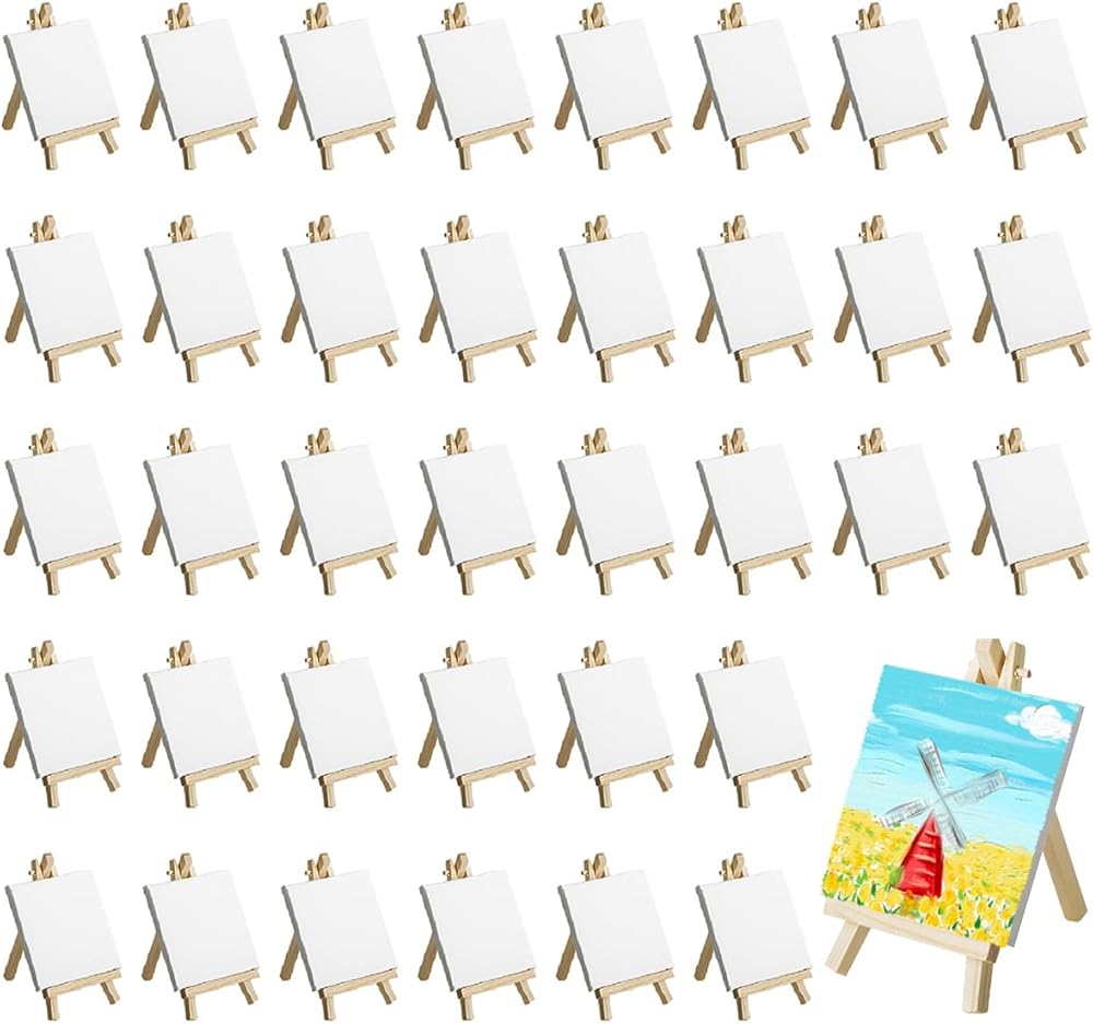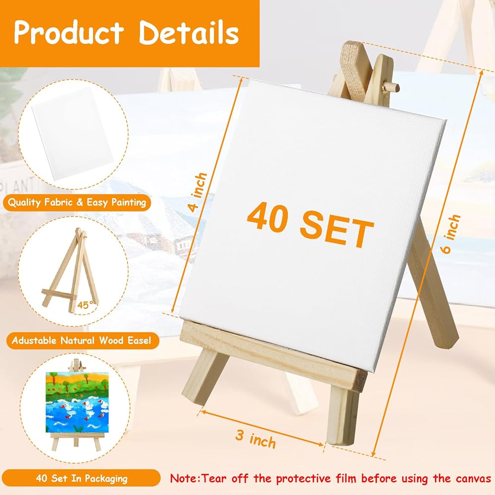مجموعة من 40 قطعة قماش صغيرة وحامل، لوحات قماشية صغيرة مقاس 4 × 4 بوصة للرسم مع حوامل صغيرة، طقم طلاء قماشي لمستلزمات الحفلات الفنية، لوحات قماشية صغيرة وحامل خشبي لطلاء الأطفال