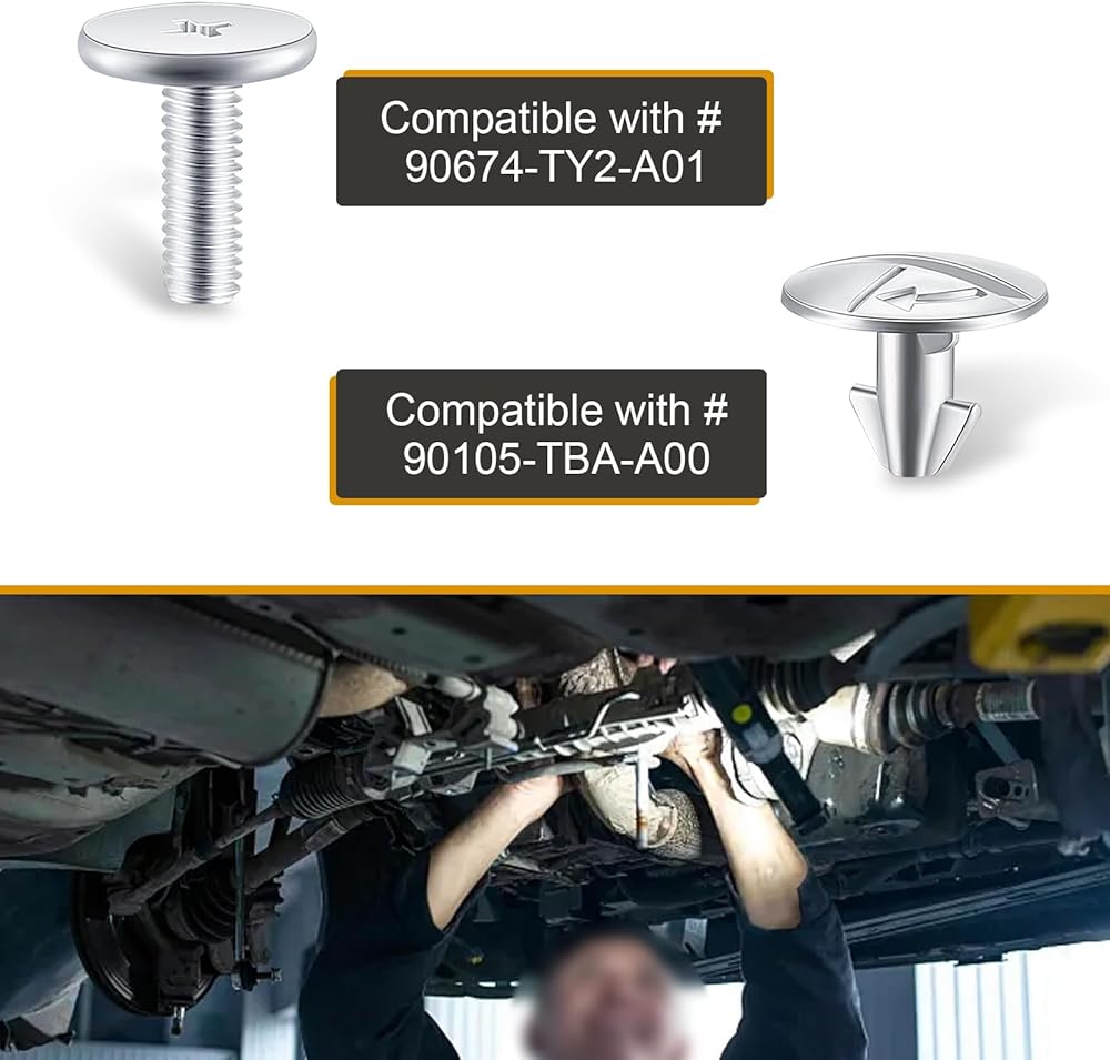 • Compatible Models: This lower engine cover bolt pin screws and clips are compatible with Honda Accord Civic CRV. Note, please check the size of the corresponding part model of your car before purchasing to avoid an unpleasant shopping experience.