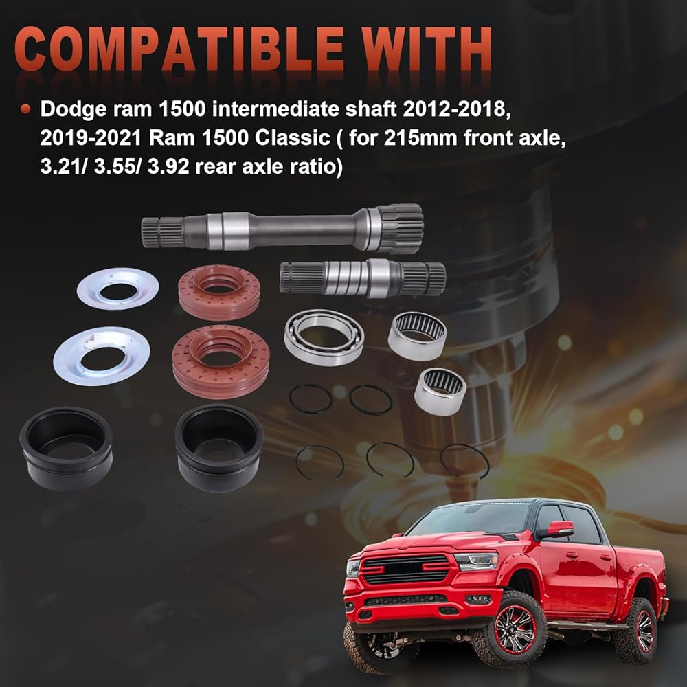 تشمل التعبئة: عمود متوسط Ram 1500، عمود السيرة الذاتية، مجموعة العمود الداخلي تتضمن العمود الأيسر، العمود الأيمن، أحذية المحور، المحامل، قاذف الزيت، حلقات كبس، حلقات على شكل حرف O، ختم ترس المحرك، ختم الإخراج إجمالي 16 قطعة في الثانية.