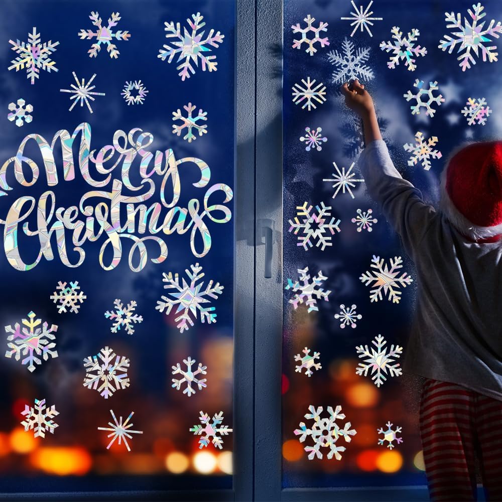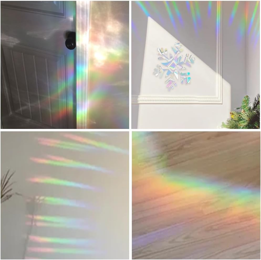 【BIRDS STRIKES PREVENTION】 Prismatic Christmas decals reflect sunlight that birds take as alerts to stop bird strikes. They can be applied to your home, bedroom, balcony, office windows, and any glass doors as bird deflectors for windows or decals for bird strikes.