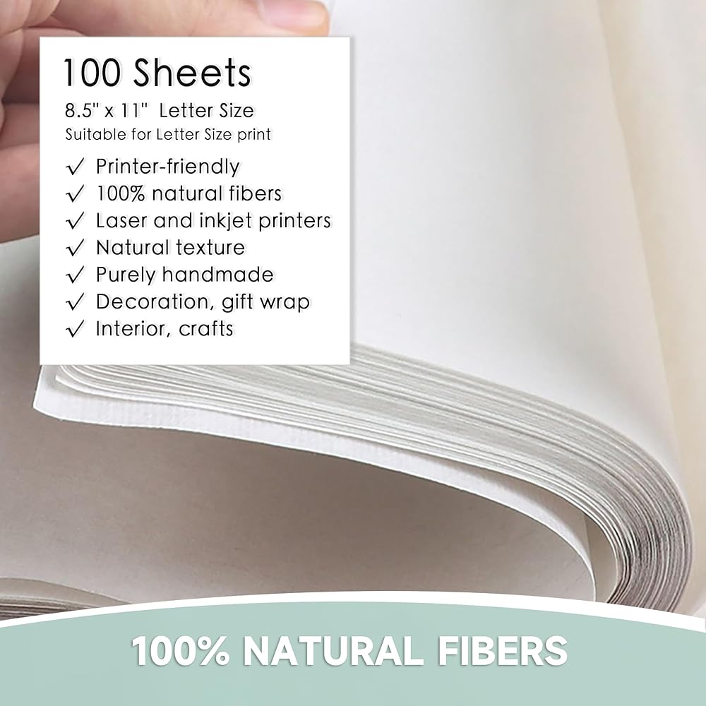 VEOOK 100 ورقة مقاس حرف 8.5 بوصة × 11 بوصة ورق التوت، ورق أرز من الألياف الطبيعية، ورق مناديل مزخرفة Decoupage لكتابة اللوحة اليدوية، تغليف هدايا الخط (MP-02)