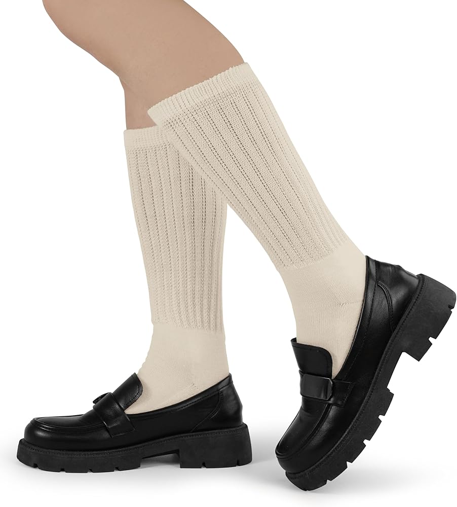 - الجوارب القابلة للتمدد تسمح لها بالانقباض والتجعد حتى كاحليك للحصول على مظهر أنيق وعصري.