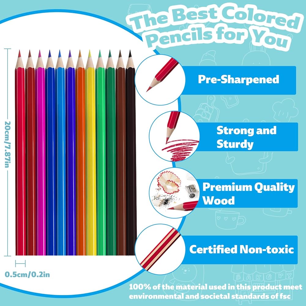 • [12 لونًا] مع 12 قلم رصاص ملون في صندوق، بما في ذلك الأحمر، والأحمر الداكن، والبرتقالي، والأصفر، والأخضر، والأزرق السماوي، والأزرق، والأرجواني، والأسود، والبني، والأخضر الأسود، والوردي. ألوان نابضة بالحياة تمكن الفنانين من جميع الأعمار من إنشاء روائع مذهلة.