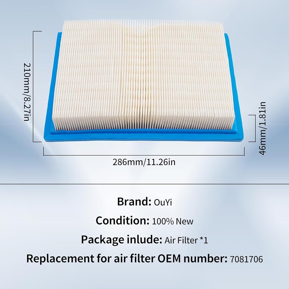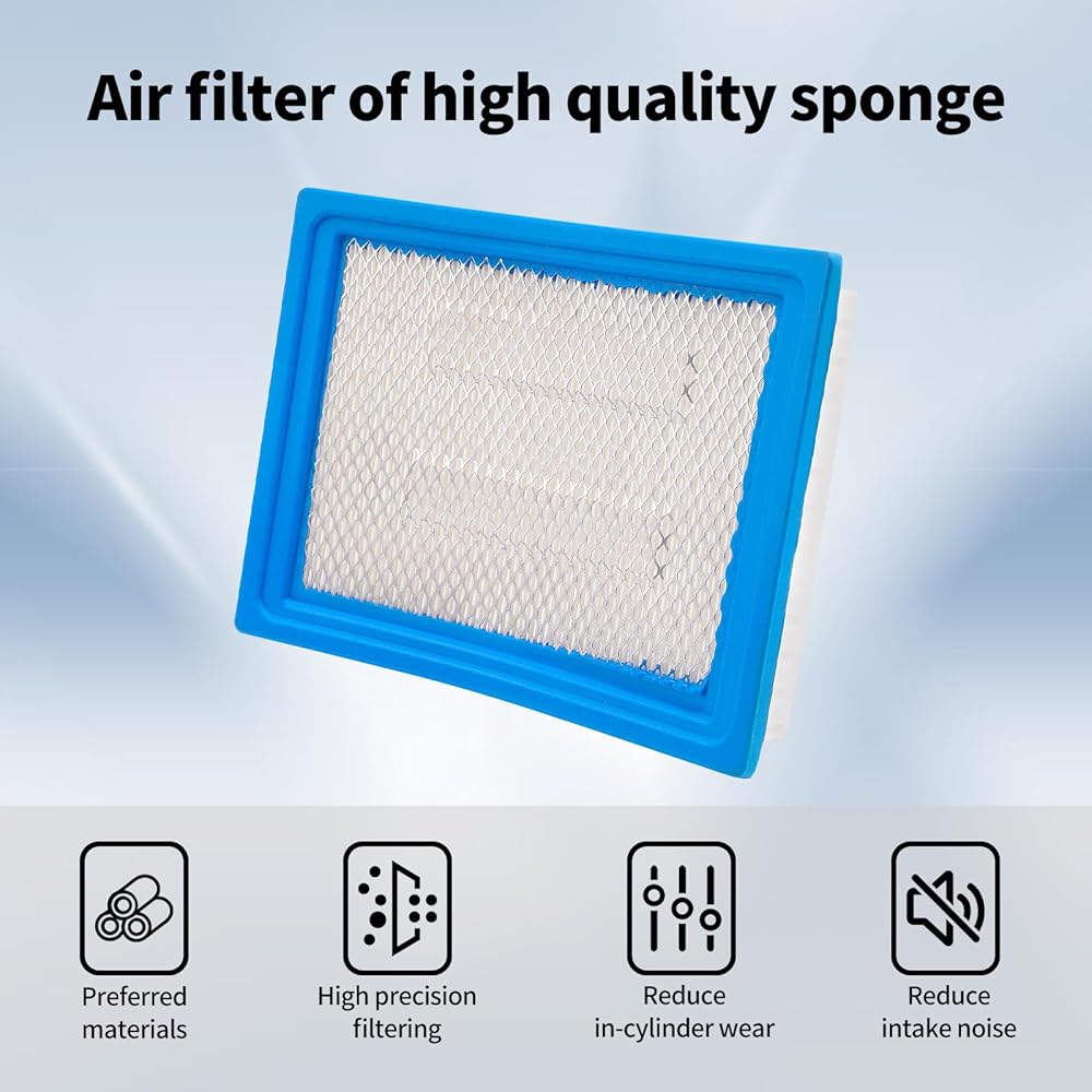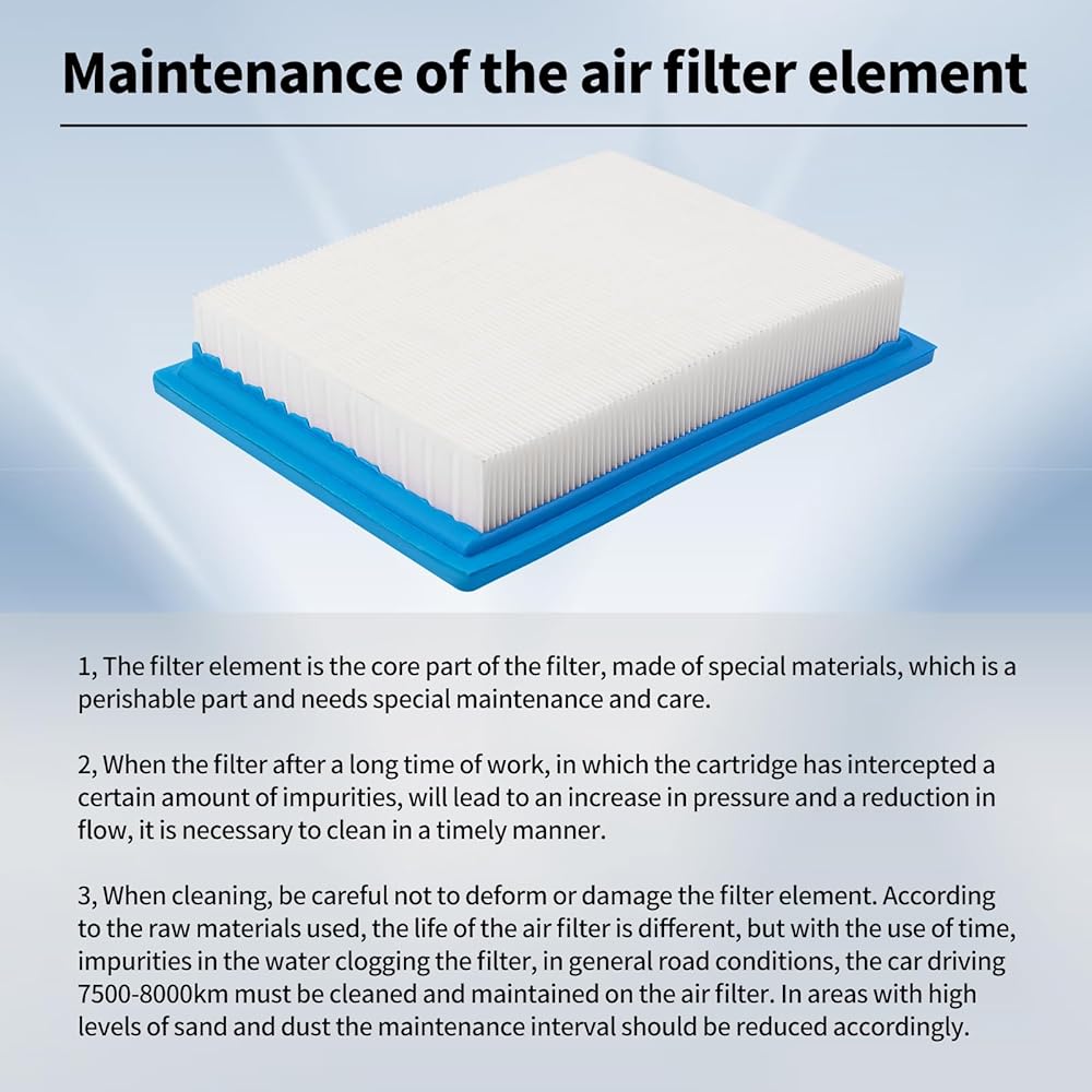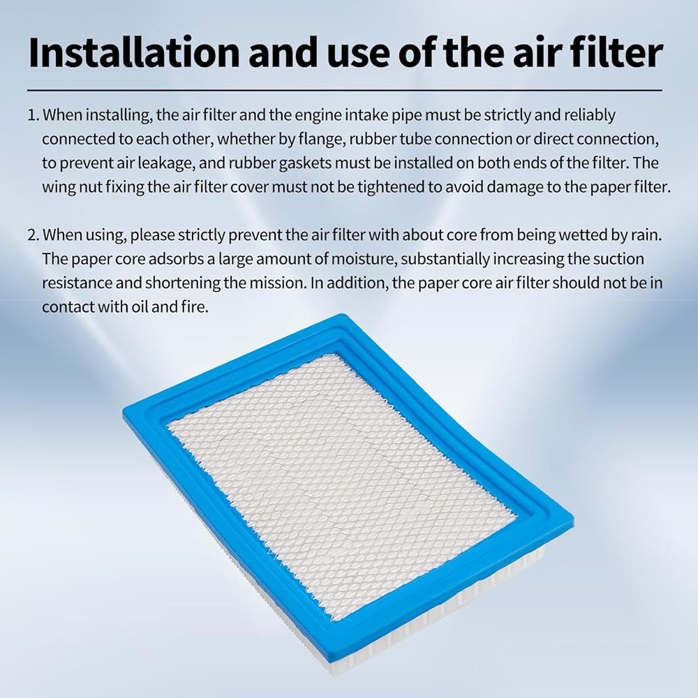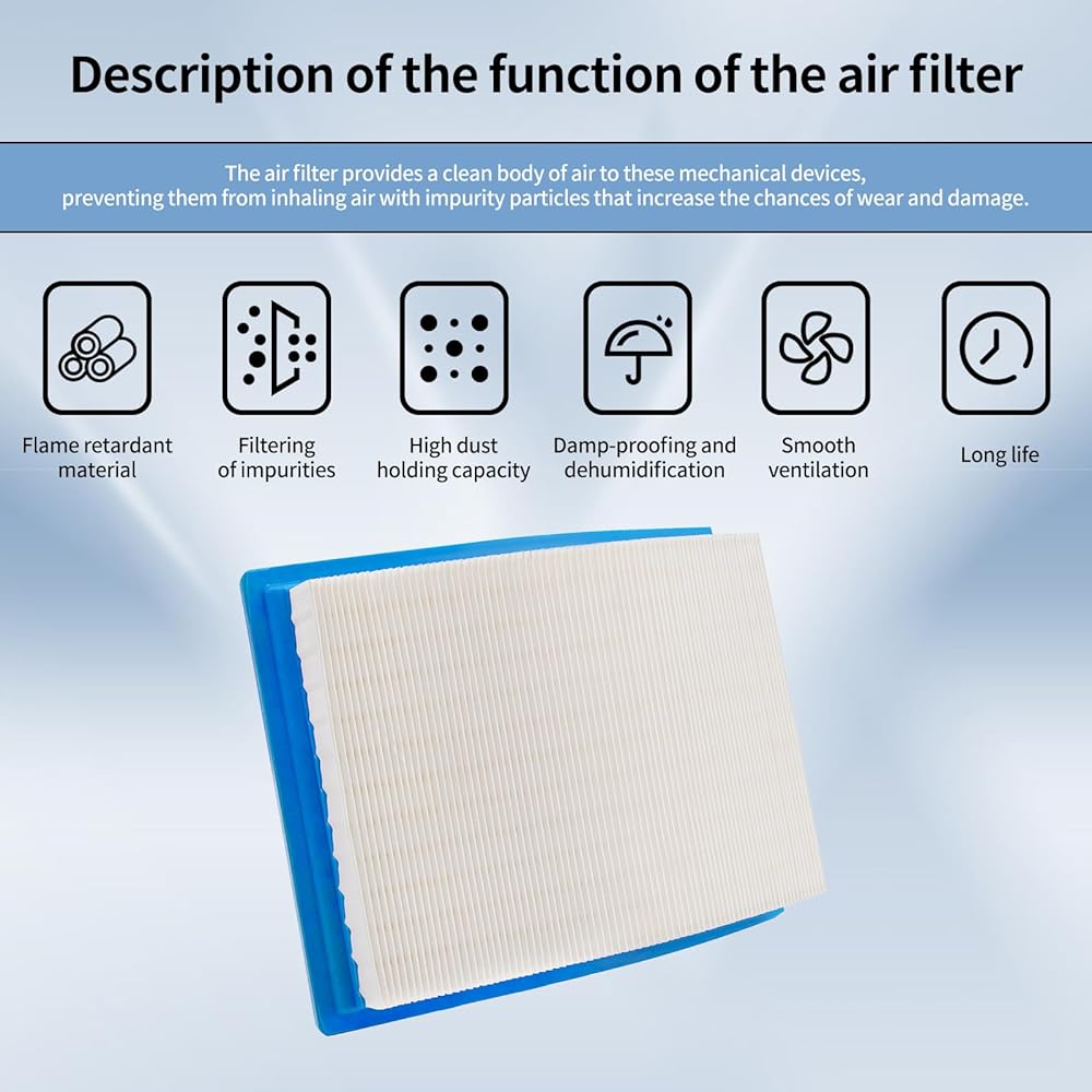 Premium Advanced Materials: Factory air filter, durable and excellent filter paper, protecting engine, eliminate contaminating of dirt, dust and debris from the carburetor and engine, improves air flow. Good filtration performance, can filter out 99% of harmful substances.