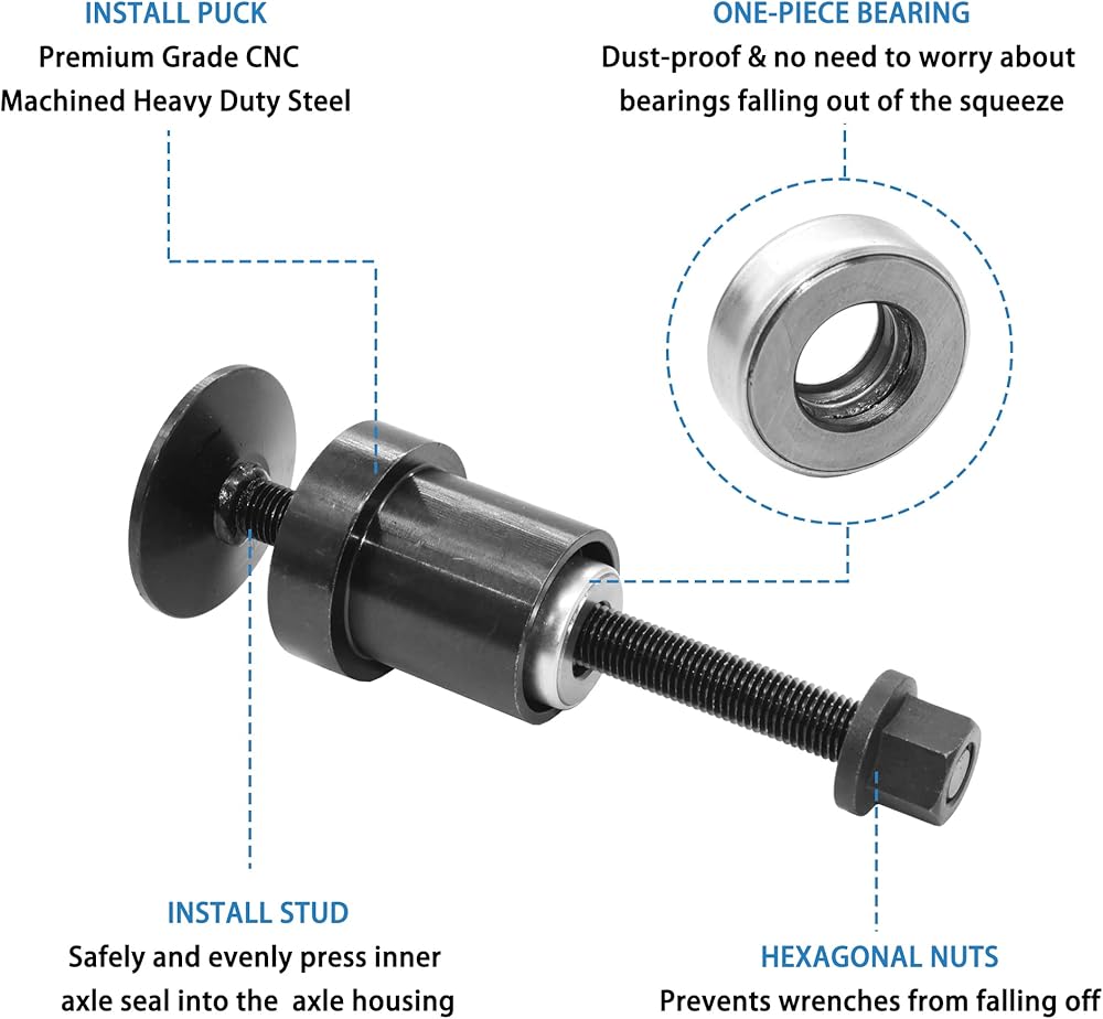 • HIGH-QUALITY MATERIALS:All Parts Of The Inner Axle Side Seal Installation Tool Are Made Of CNC Machined Heavy Steel, And Are Electroplated With Zinc Black. High Precision And High Hardness Can Extend The Service Life. Ensure That The Manufacture Of Each Part Meets The Required Specifications.