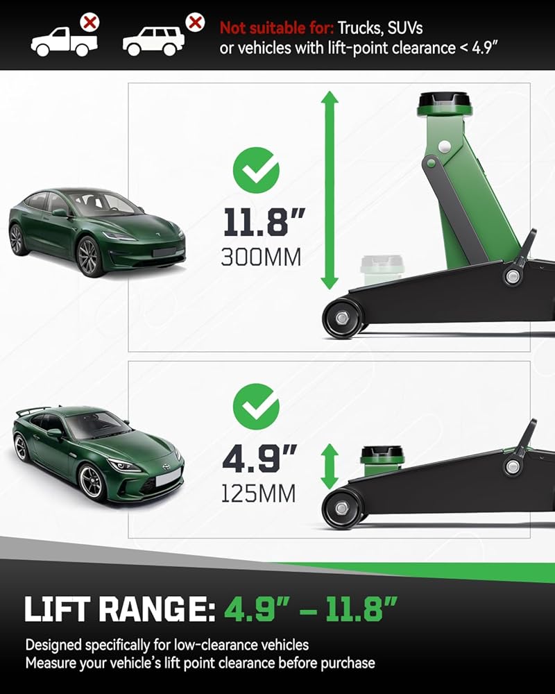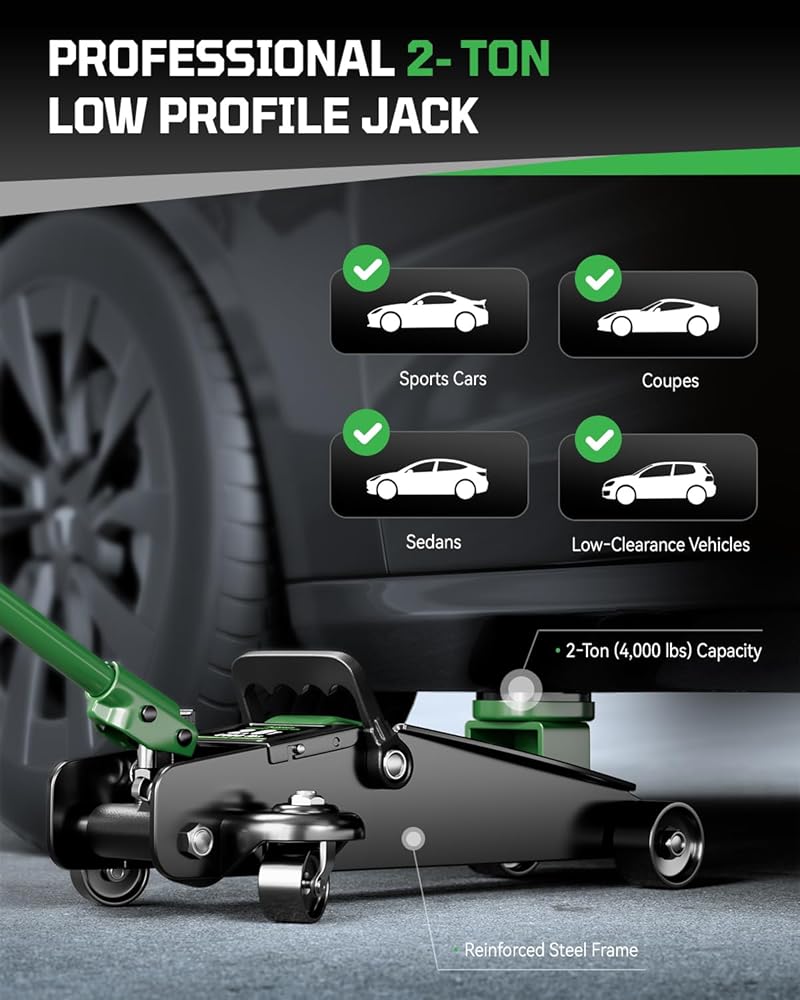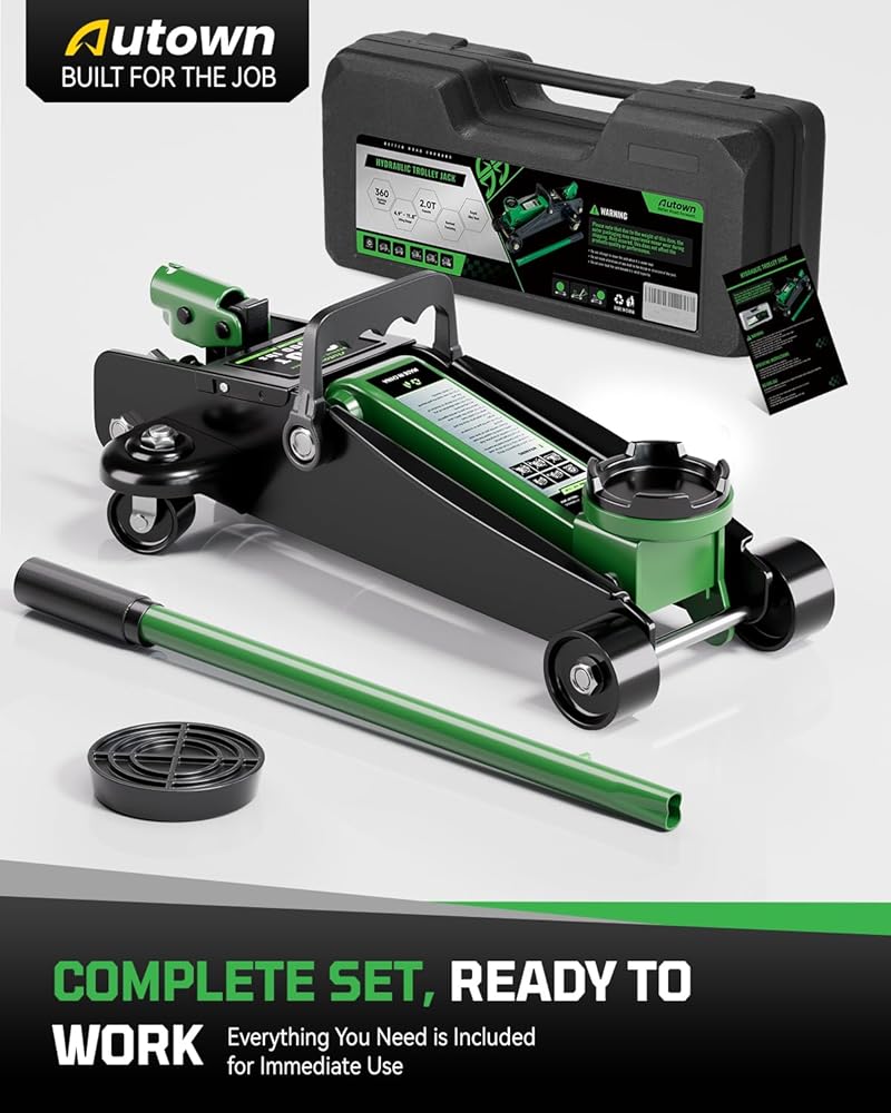 رافعة أرضية منخفضة 2 طن من AUTOWN - نطاق رفع 4.9-11.8 بوصة لسيارات السيدان والسيارات الرياضية، رافعة سيارة هيدروليكية شديدة التحمل، سعة 4000 رطل مع وسادة مضادة للانزلاق وحقيبة حمل