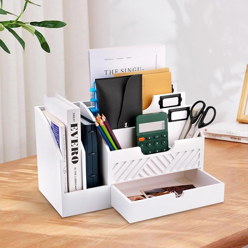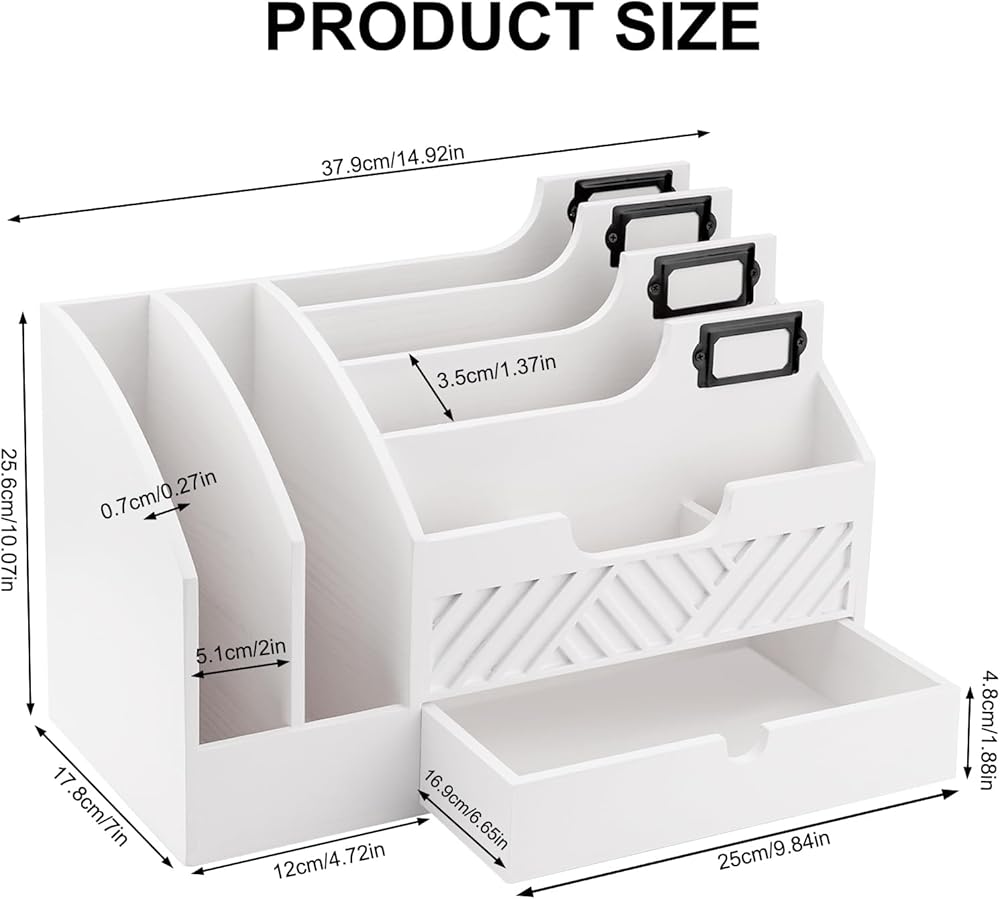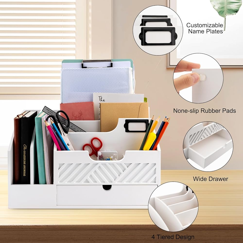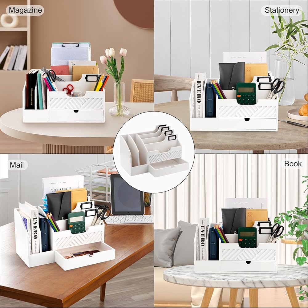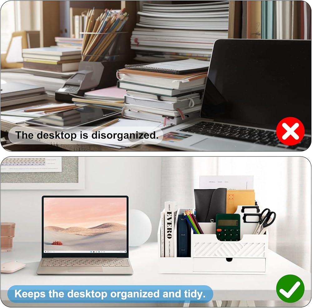 منظم سطح المكتب الأبيض ليس عمليًا فحسب، بل إنه أيضًا إضافة أنيقة لديكور منزلك. بفضل تصميمه النظيف والواضح، فإنه يوفر مظهرًا كلاسيكيًا ومعاصرًا يكمل مجموعة واسعة من الأنماط الداخلية، من الحديثة والبسيطة إلى المزرعة والساحلية. يوفر المظهر الخالد للخشب الأبيض تنوعًا، مما يجعل من السهل دمجه في أي غرفة.