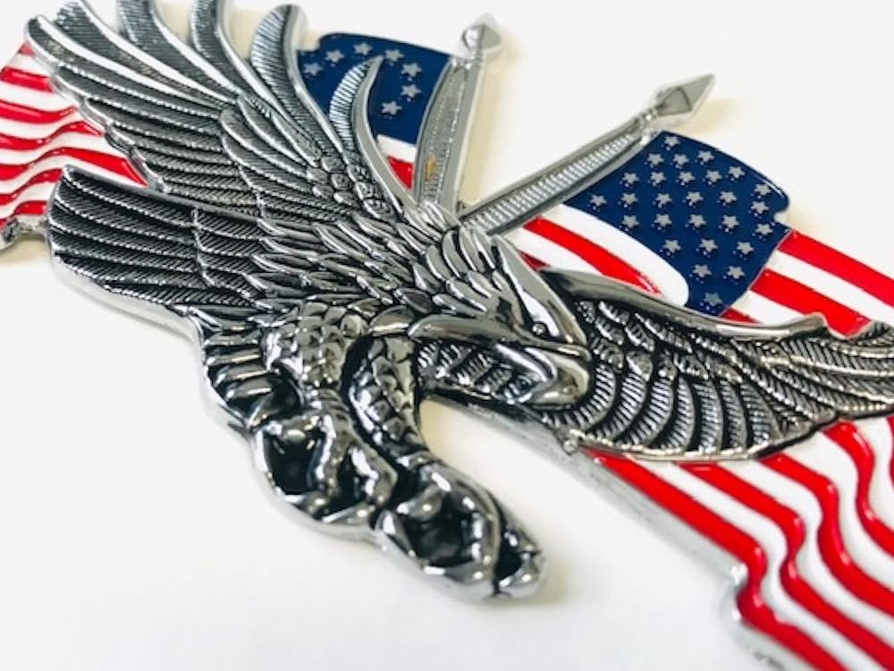 4.25 بوصة × 2.75 بوصة بوصة النسر الأمريكي ميدالية معدنية هارلي سبورتستر سيسي بار مسند الظهر ديفيدسون بوبر تشوبر شعار عصا على 3M ملصق لاصق لراكبي الدراجات النارية بيوتر كروم أحمر أبيض أزرق أعلام الولايات المتحدة الأمريكية!