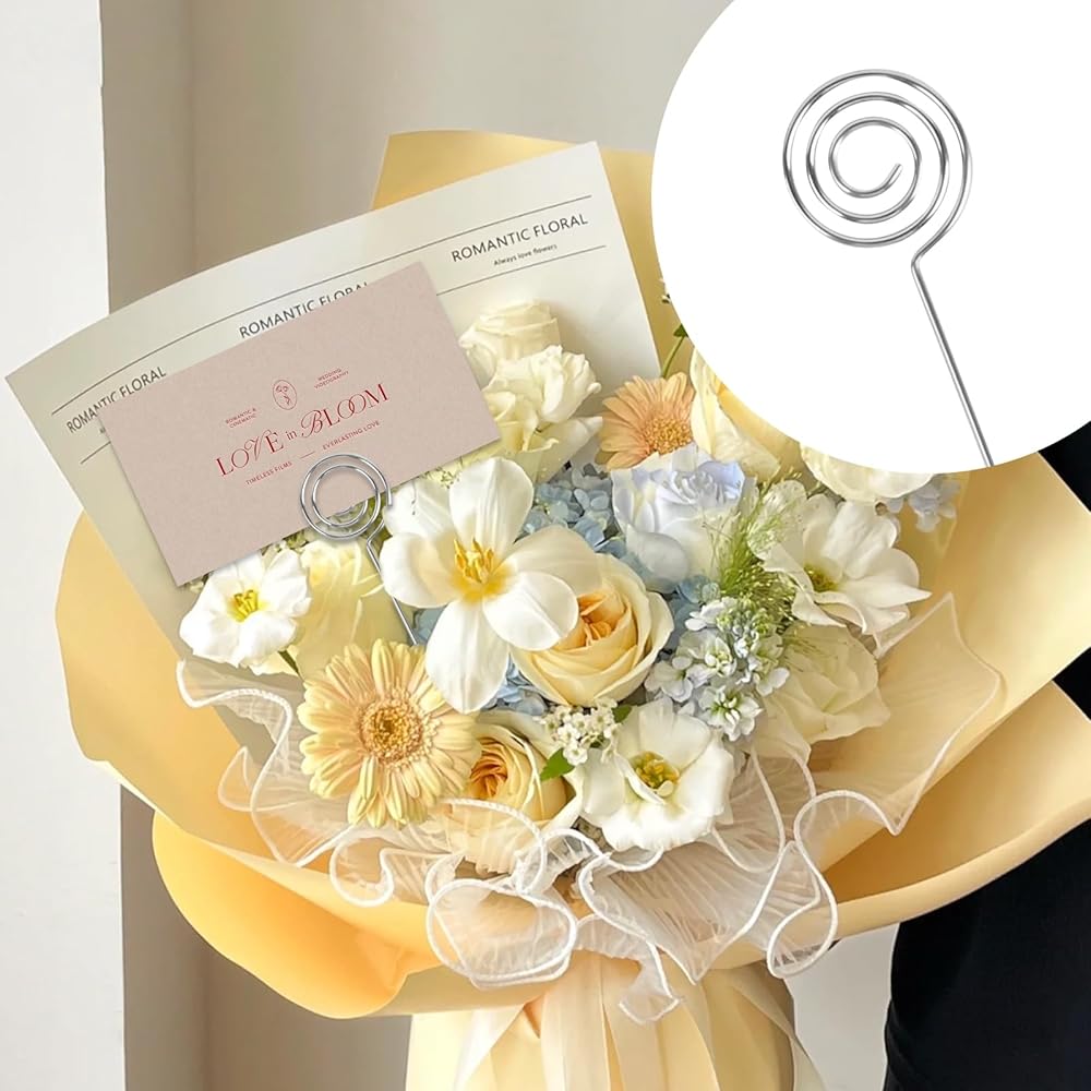 Multi purpose: This floral card holder picks are suitable for parties, anniversaries, large holiday events, gatherings, etc; Metal wire floral place card holders are used for cake toppers, memos, table numbers, photo racks, note cards, and note holders; Picture folder clips are perfect for wedding party gifts, restaurants, banquets, etc