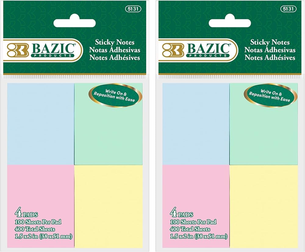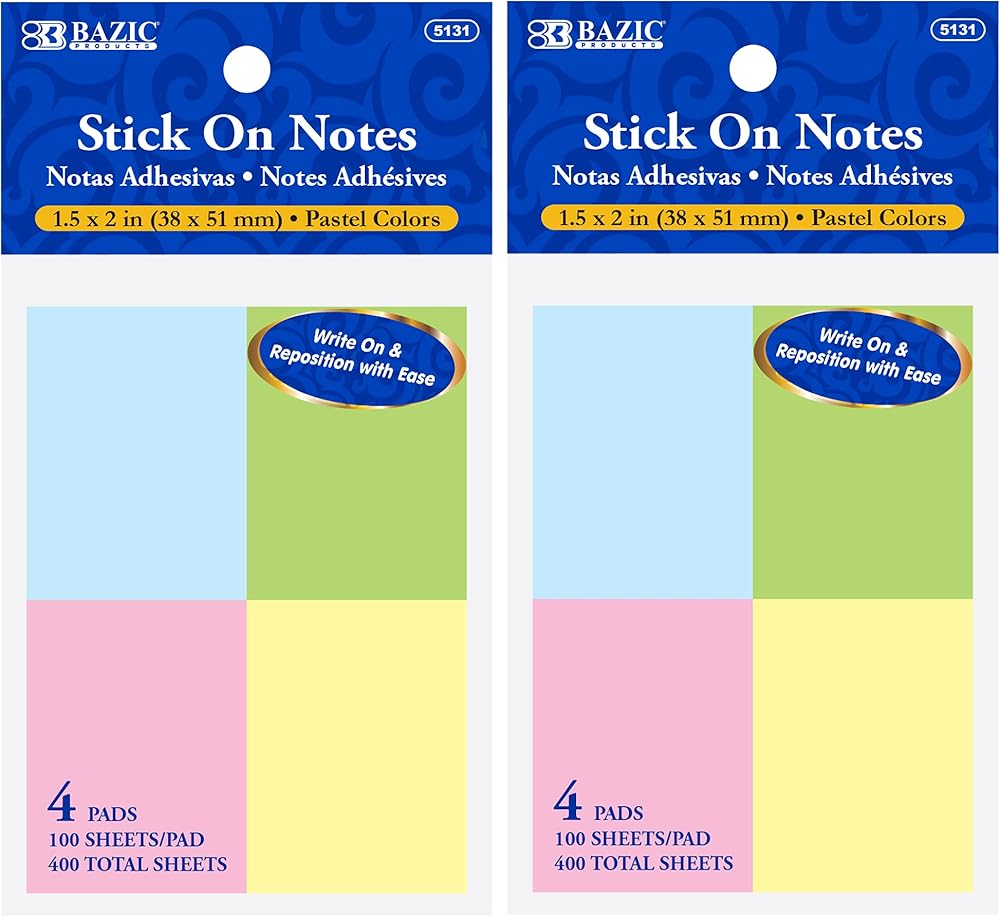 ⭐ استخدامات غير محدودة. عبر عن نفسك بالألوان لتلبية احتياجات التواصل الخاصة بك. تقدم BAZIC مجموعة متنوعة من الملاحظات اللاصقة، من الكبيرة إلى الصغيرة، بما في ذلك الملصقات المربعة الصفراء، والعمود المبطن، ولون النيون، وأعلام الأسهم المطبوعة، وما إلى ذلك.