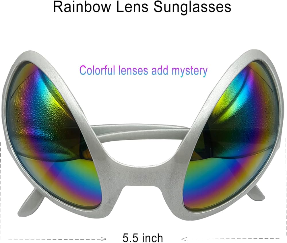نظارات كائن فضائي رائعة: يضيف تصميم النظارات الشمسية بعدسات قوس قزح الغريبة الغموض والمرح، ويحولك على الفور إلى زائر فضائي.