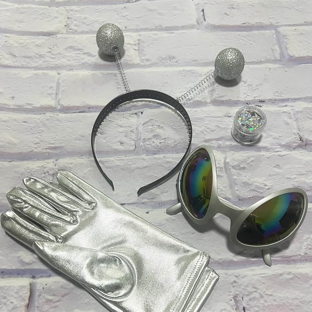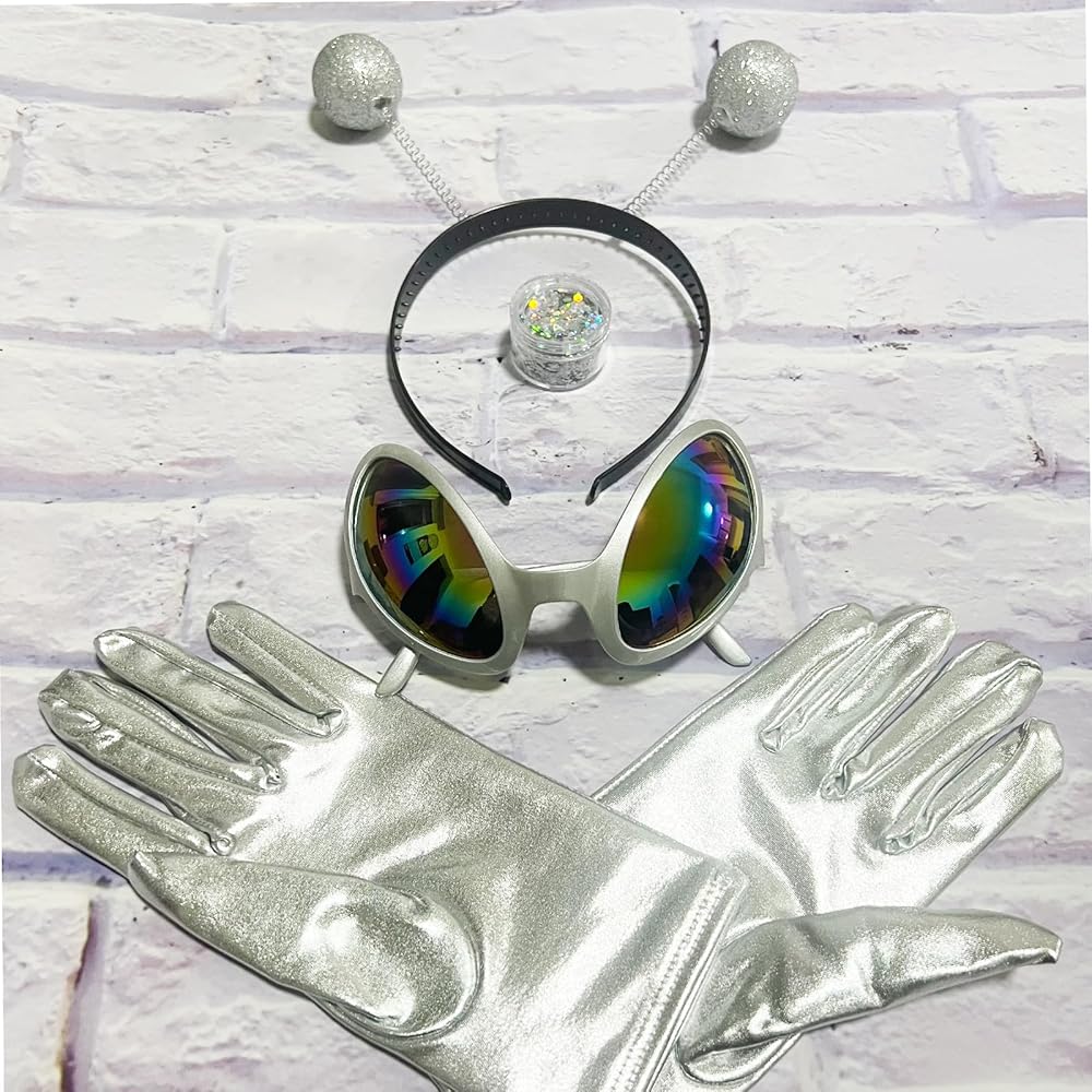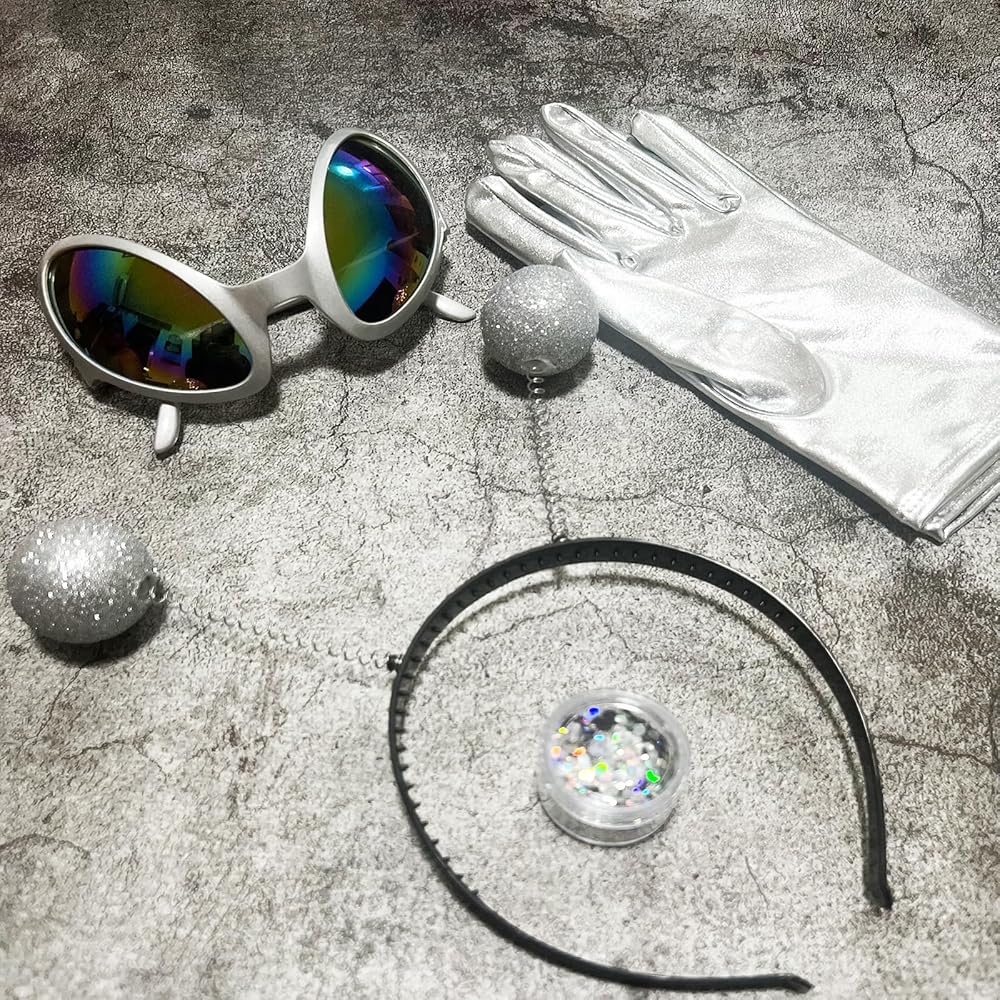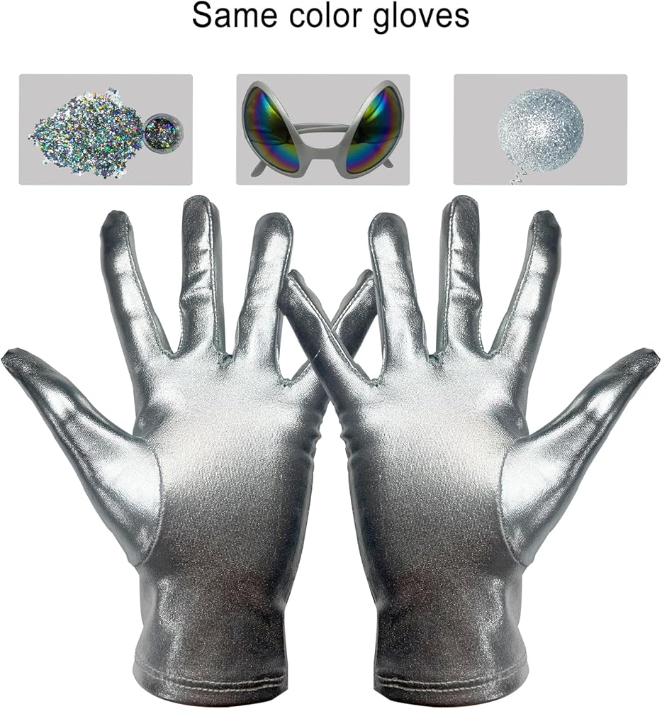 تطابق مثالي: تتناسب القفازات بشكل مثالي مع عصابة الرأس الغريبة ونظارات العدسات الملونة الغريبة، ستشعر على الفور بموضوع الحفلات التنكرية الخاصة بالكائنات الفضائية.