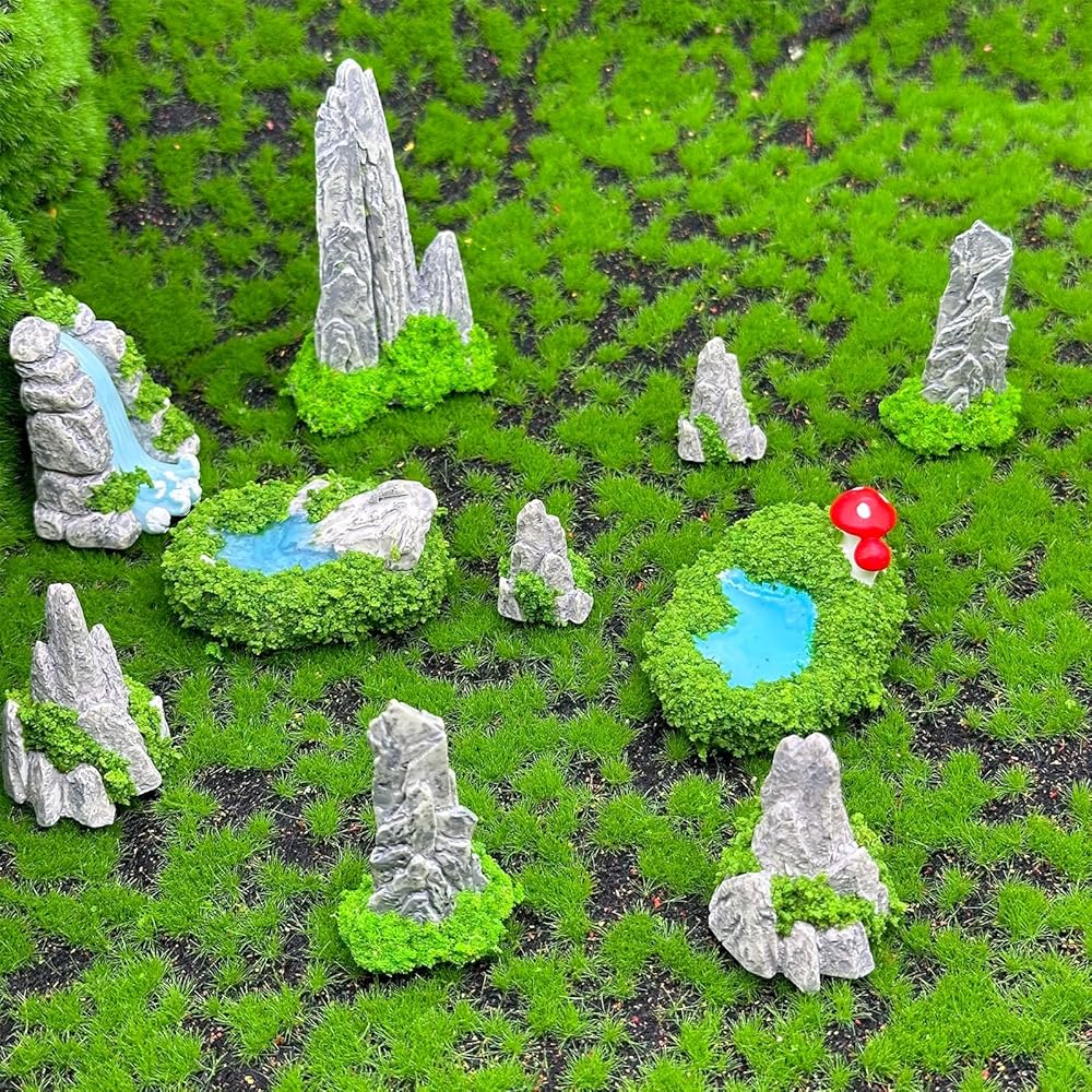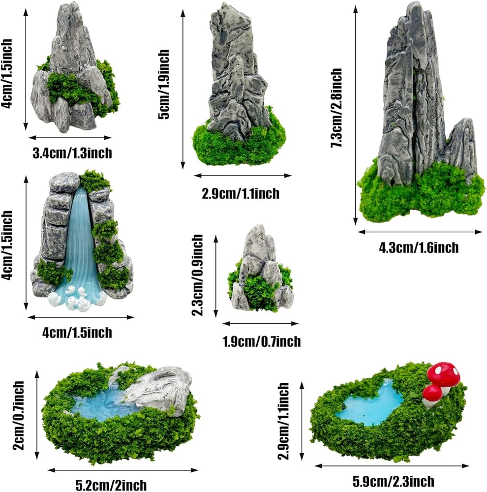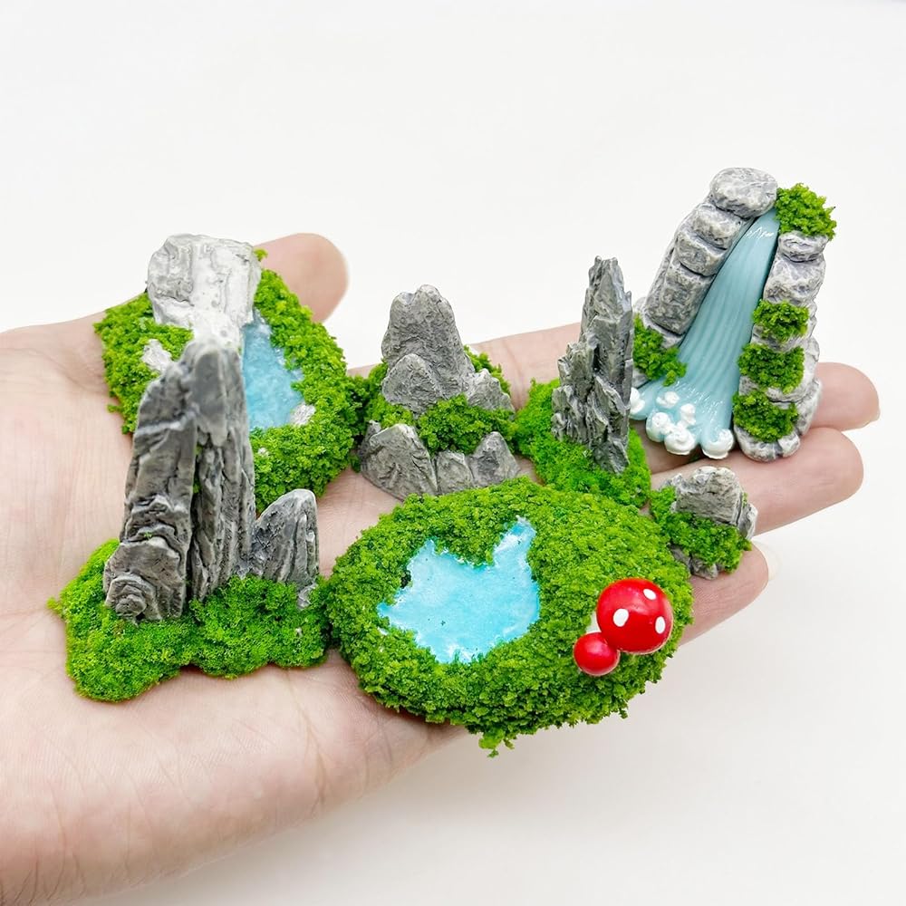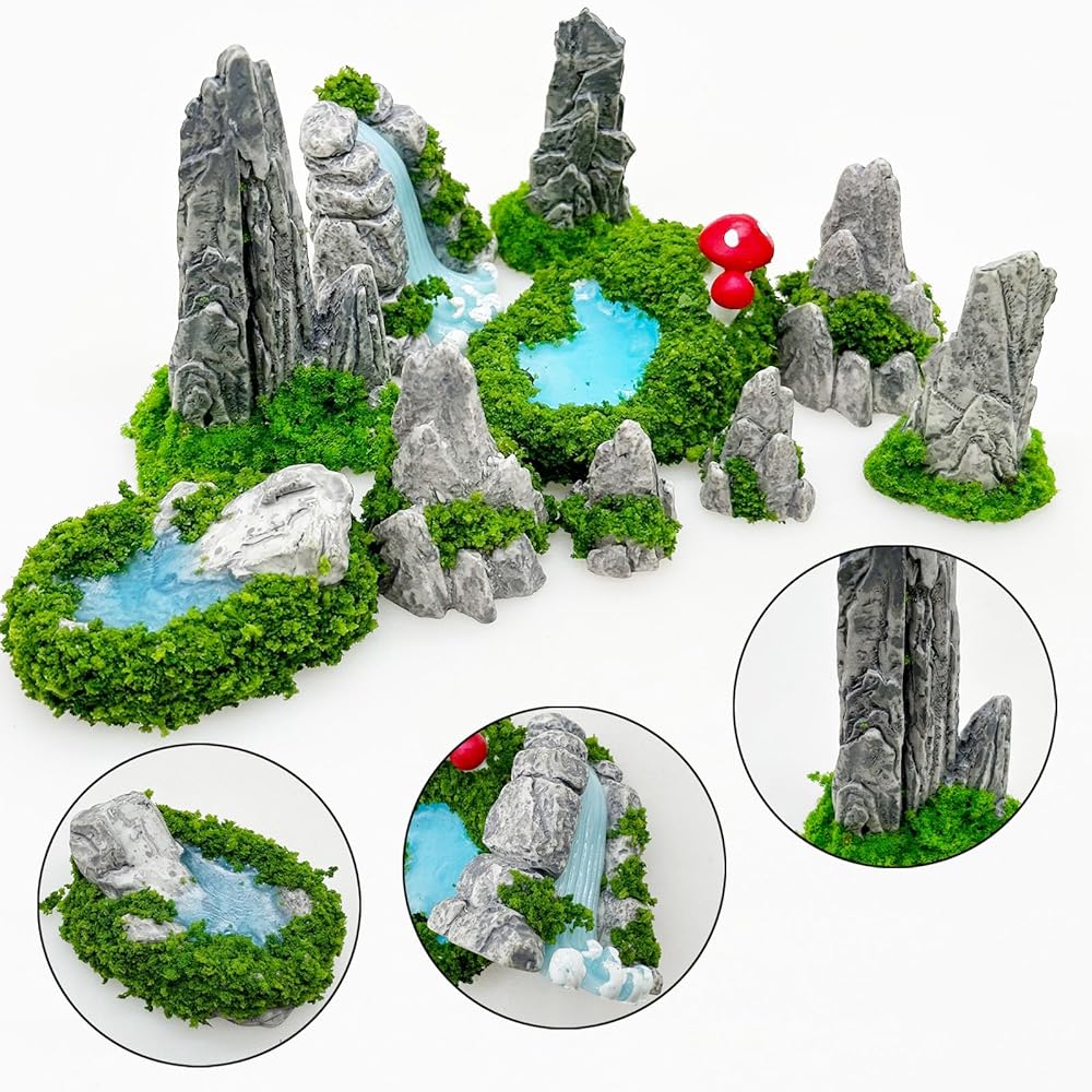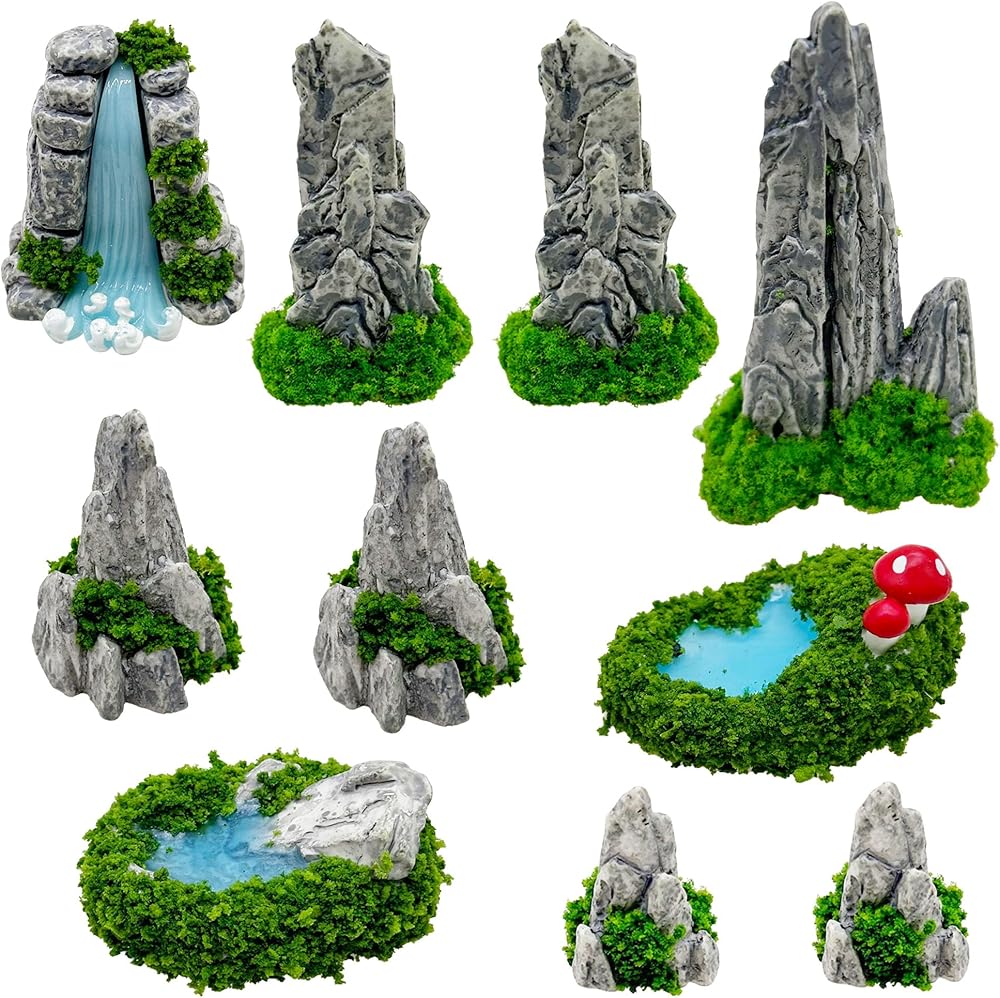 Mini Fairy Garden Accessories set: 10 PCS fairy house diorama accessories, such as miniature rockery, flowers, ponds, waterfalls etc. It appears in realistic appearance, very delicate, suitable for micro landscape DIY lover to use.