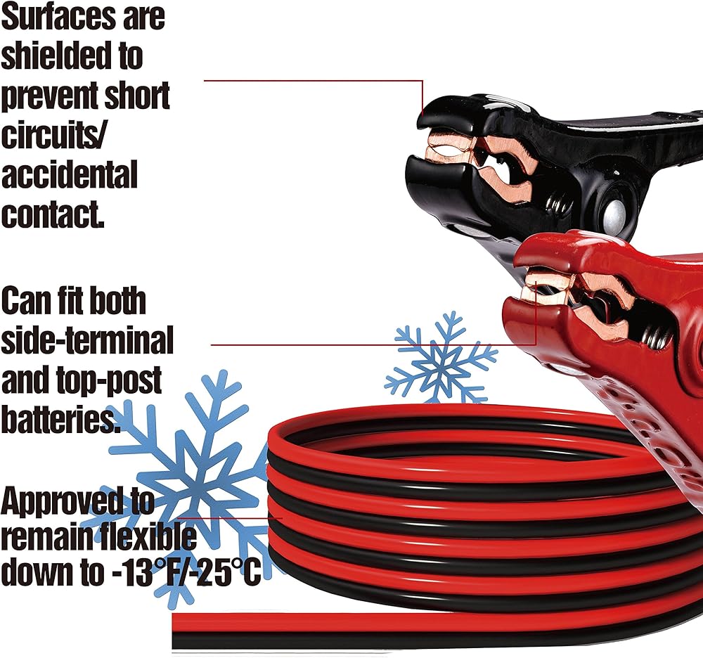 لا يلبي كابل التوصيل 10GA متطلباتك الخاصة ببدء تشغيل بطارية ميتة أو ضعيفة فحسب، بل إنه ميسور التكلفة. مثالي للاستخدام مع السيارات صغيرة الحجم.