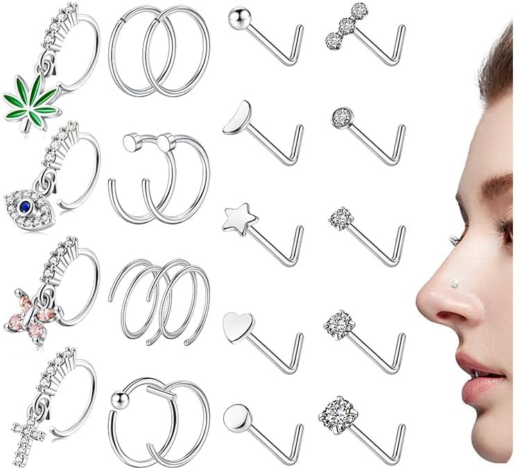 مجوهرات ثقب الأنف العصرية: تتميز حلقات ومسامير الأنف الصغيرة هذه بتصميمات أنيقة وراقية، مثالية لأي مناسبة أو ملابس، سواء كانت للعمل أو العطلات أو الحفلات، مما يجعلها خيارًا مثاليًا لمجموعة مجوهرات أنفك.