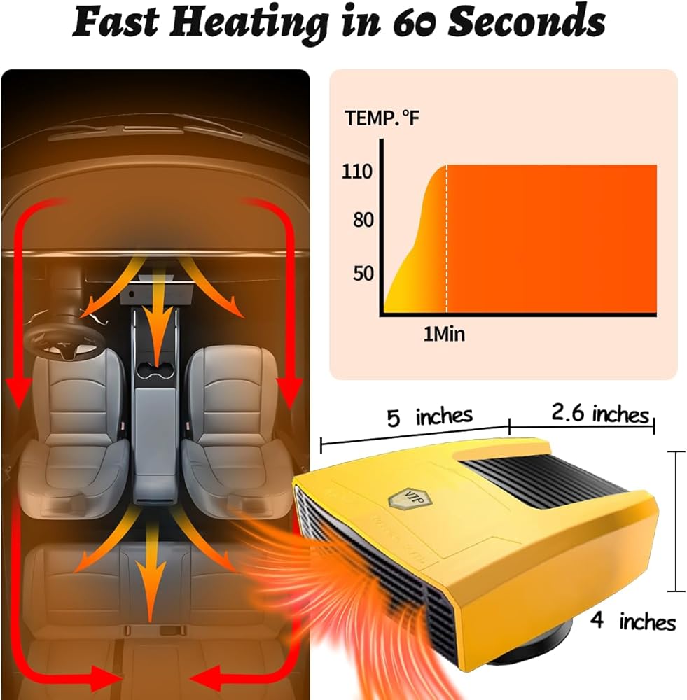 مروحة سخان 2 في 1: سخان، تسخين سريع لمدة 60 ثانية، زيادة درجة حرارة مساحة السيارة. المروحة، تقوم بتدوير الهواء داخل السيارة لإزالة الرائحة الغريبة