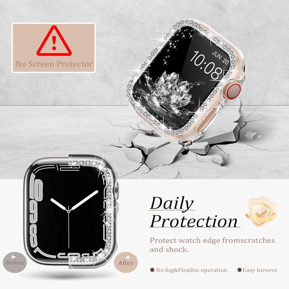 ⌚【جراب واقٍ مقاوم للصدمات 】إطار الجراب الصلب المصنوع من البولي كربونات بدون واقي شاشة من الزجاج المقوى، استمتع بلمس الشاشة الحقيقي، بدون فقاعات. حقا حل مخاوفك بشأن مشاكل شاشة اللمس. لا تقلق بشأن الضباب الذي يظهر على الشاشة بسبب العرق بعد التمرين، أو اختلاف درجة الحرارة بعد العودة من الخارج. يحمي حافة ساعتك الذكية من الخدوش السطحية القبيحة ويمتص الصدمات