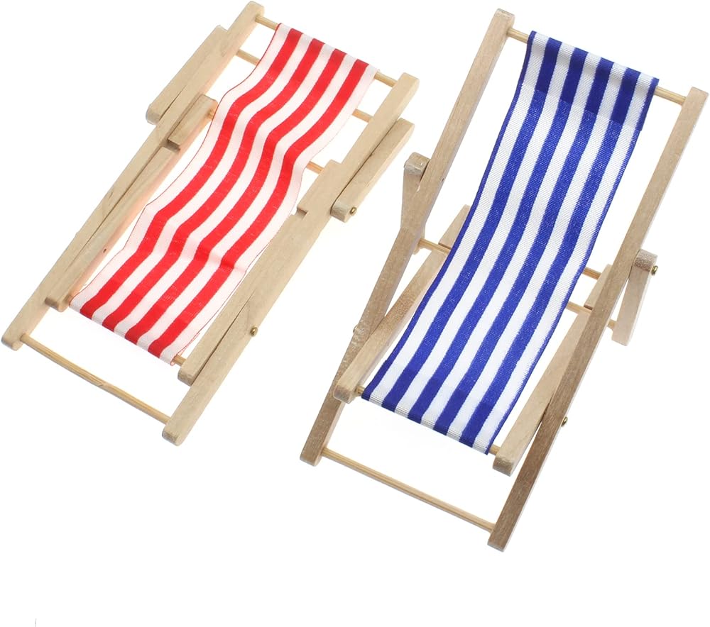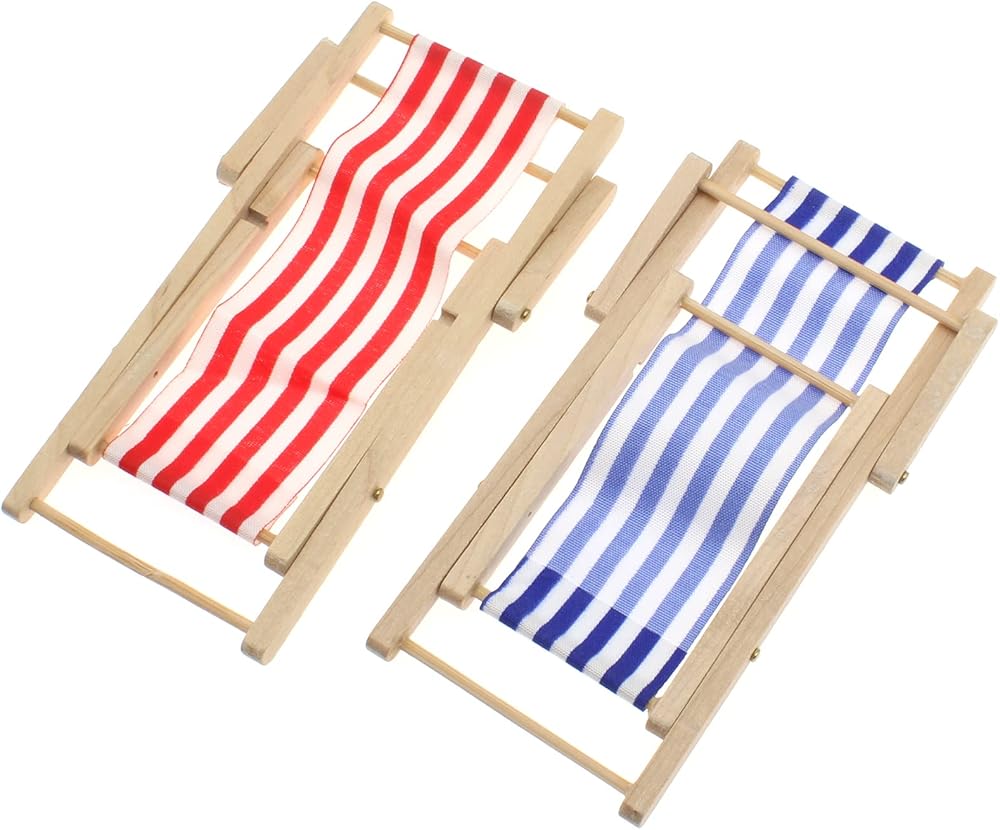 FDXGYH 2 قطعة 1:12 نموذج صغير خشبي قابل للطي كرسي حمام شمس للشاطئ كرسي طويل للسطح حرفي لبيت الدمى مكتب منزلي حديقة الديكور