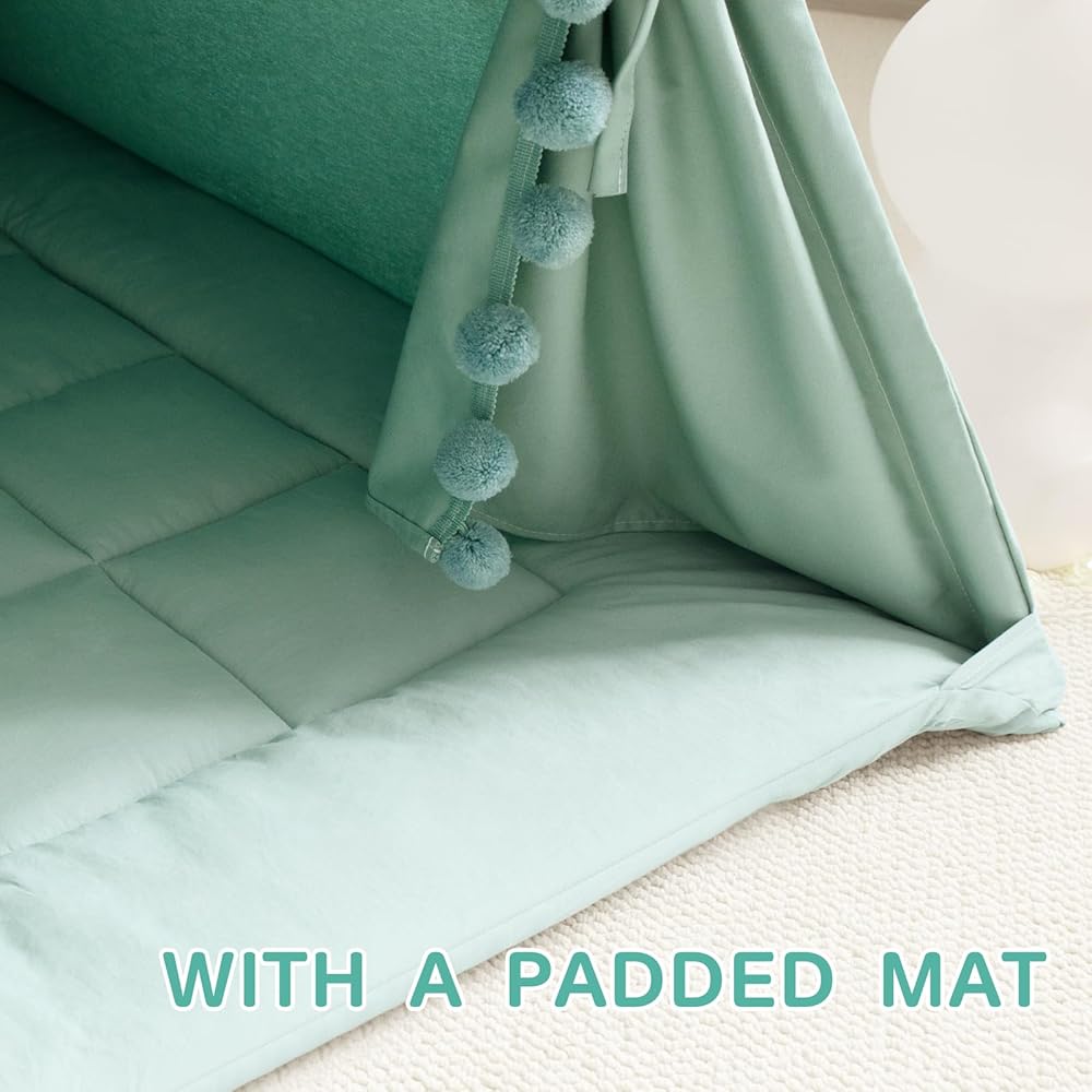 ✨【سجادة مبطنة】تأتي خيمة اللعب للأطفال مع بساط ناعم بتصميم مانع للانزلاق. تضمن البطانة لعبًا أكثر أمانًا وقراءة أكثر راحة وقيلولة داخل الخيمة، مما يترك الأطفال أحرارًا للحصول على المزيد من المرح.