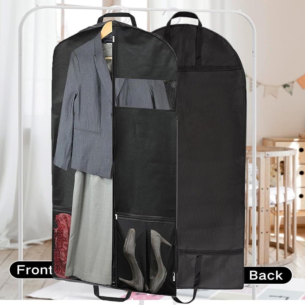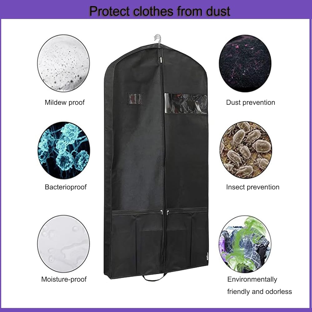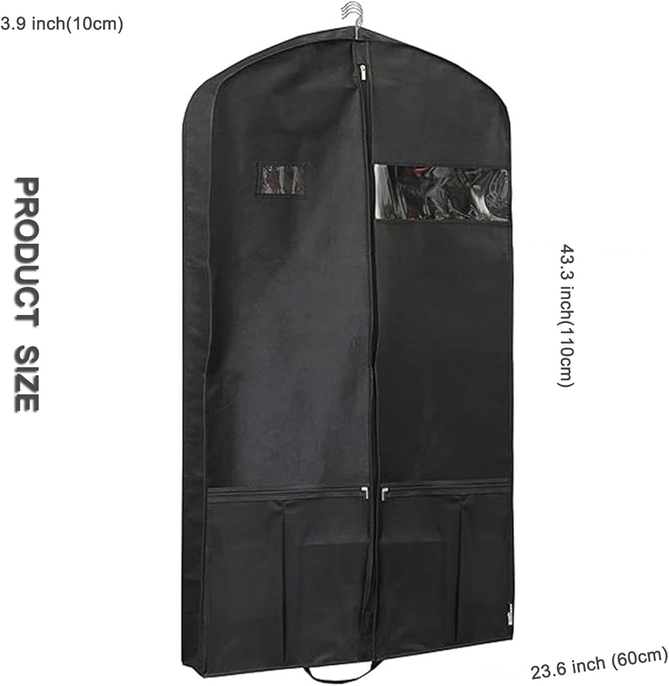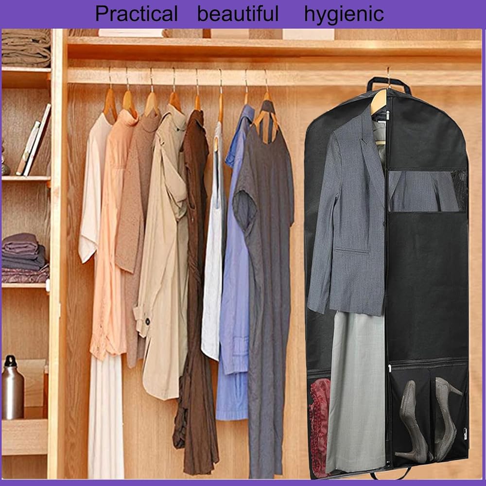 With a length of 43 inches, this garment bags for storage can hang multiple items neatly side by side on a sturdy built-in plastic or wooden hanger, making it ideal for clothing of different lengths, such as suits, shirts, dresses, sweaters, jackets, pants, tops, coats, shirts, winter coats, and more. The gown bag's 23.6-inch width and 4-inch side gussets prevent the garment from tightening, while the inner lining prevents the fabric from seizing.