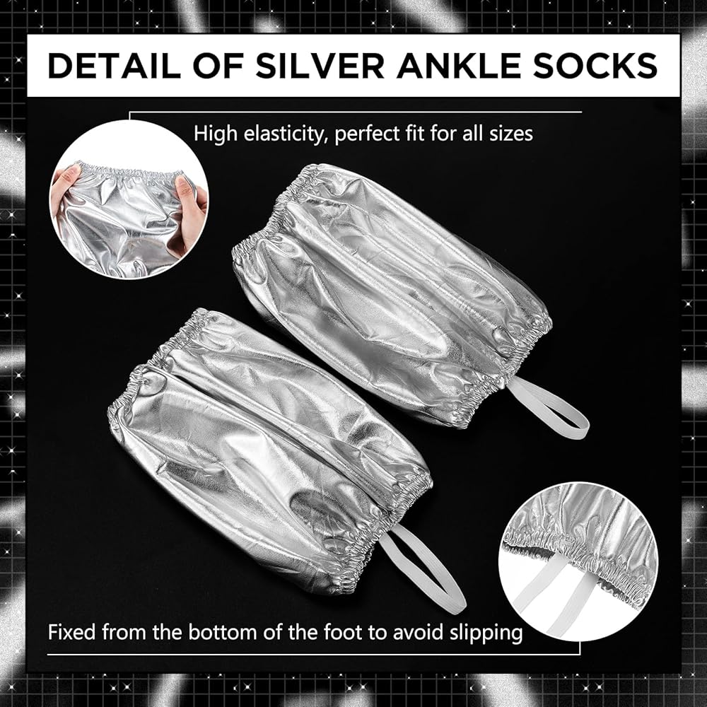 The ankle socks in classic silver, are suitable for a range of events, brings the distinct appeal of the 90s, ideal for retro themed parties, stage performances, and more.