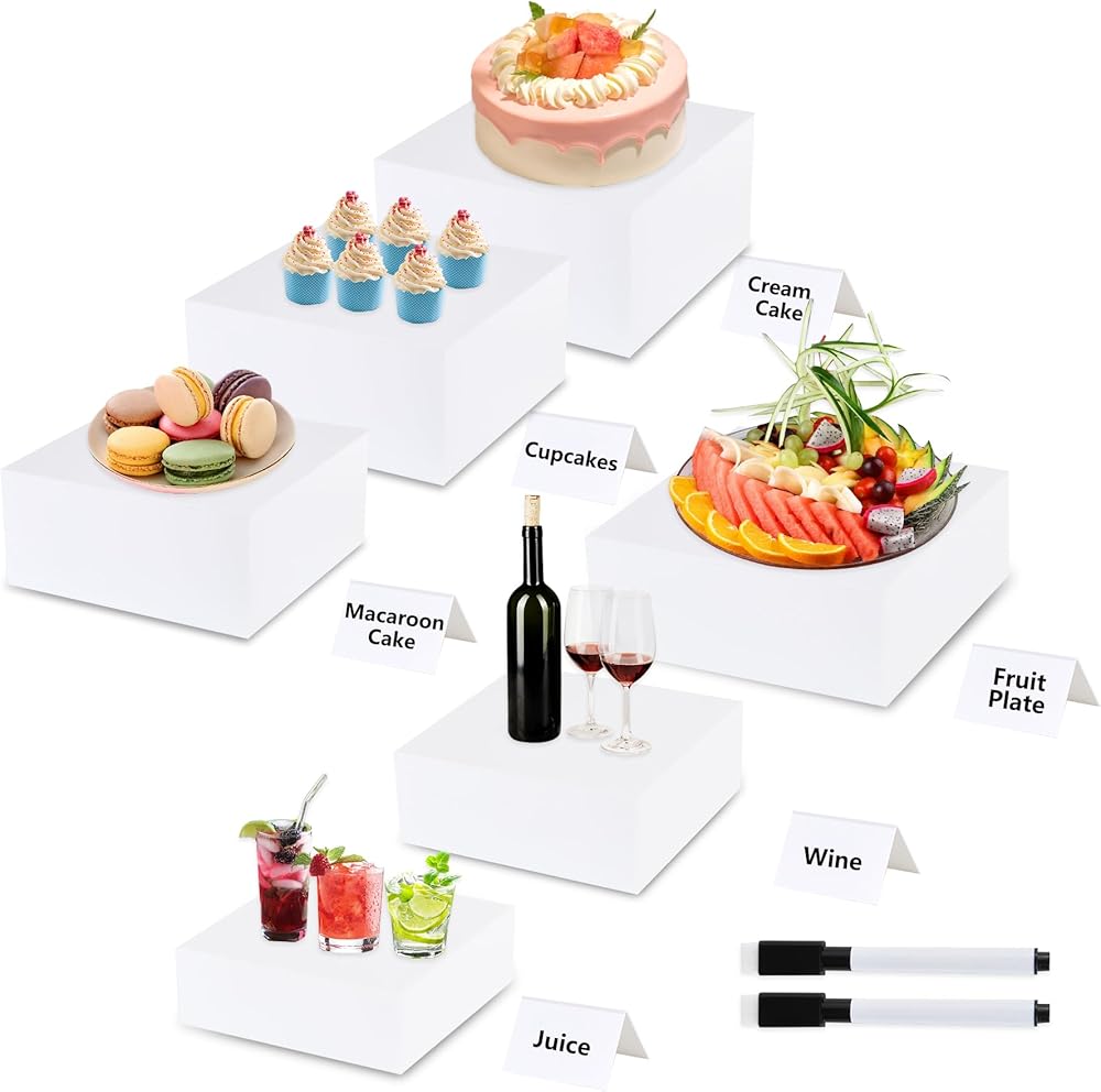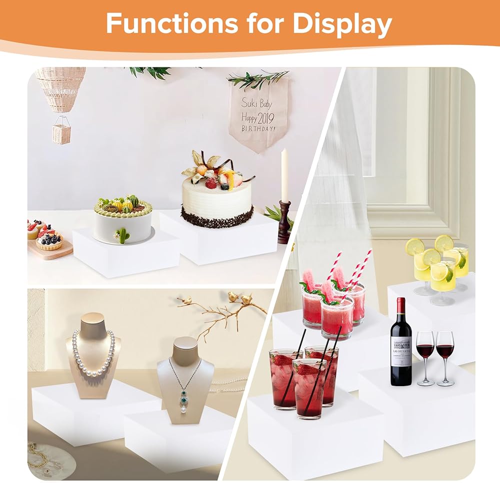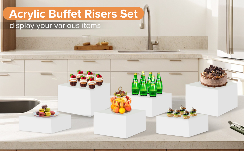 صلبة ومتينة: الرافعات البيضاء لعرض الطعام مصنوعة من مادة أكريليك عالية الجودة، وهيكل صلب، وقدرة تحمل قوية، وهناك 6 مقاسات مختلفة متاحة لتختار من بينها، وهي: 6 بوصة × 6 بوصة × 2 بوصة، 7 بوصة x7 بوصة × 2.5 بوصة، 7.9 بوصة × 7.9 بوصة × 3 بوصة، 9 بوصة × 9 بوصة × 4 بوصة، 9.5 بوصة × 9.5 بوصة × 5 بوصة، 12 بوصة × 12 بوصة × 6 بوصة، يمكن أن تلبي مجموعة متنوعة من متطلبات العرض، تضيء العرض، وجلب الجمال الهرمي البصري للجميع، وترك انطباع عميق لدى الضيوف