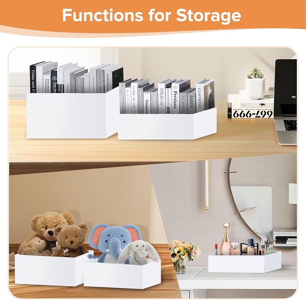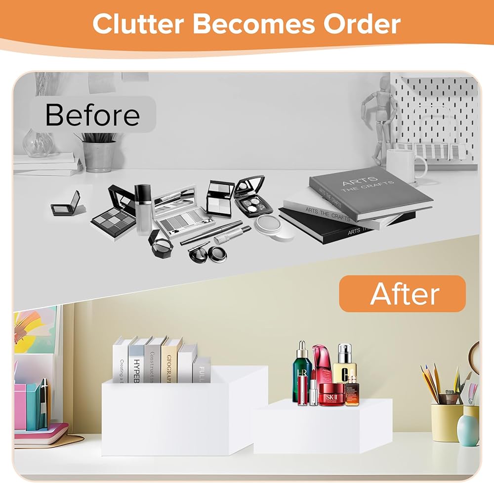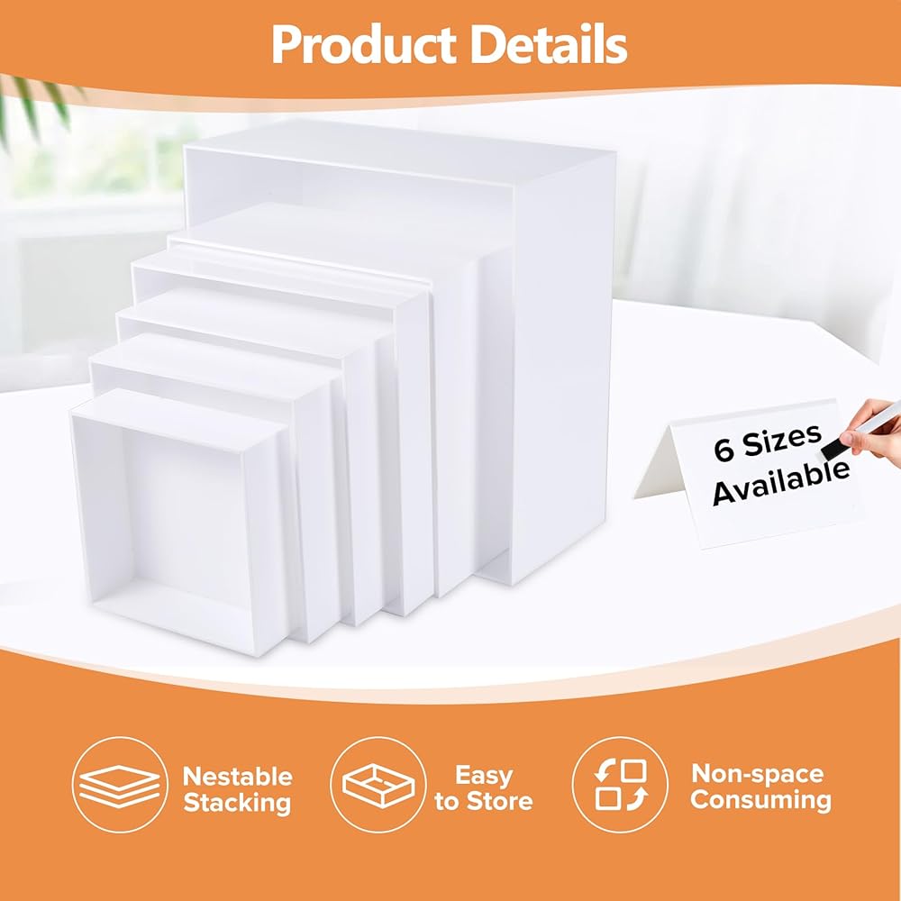 استخدامات متعددة: تم تصميم الجزء السفلي من حوامل العرض البيضاء بتصميم مجوف، والذي يمكن أن يلبي احتياجات العرض الخاصة بك عند وضعه لأعلى، ويمكن استخدامه أيضًا كصندوق تخزين عند قلبه للتخزين، وهو متعدد الاستخدامات للغاية. يمكن تداخلها وتكديسها، مما يجعل من السهل عليك تكديسها عند عدم استخدامها وتخزينها في المكان المناسب، مما لن يشغل مساحة كبيرة