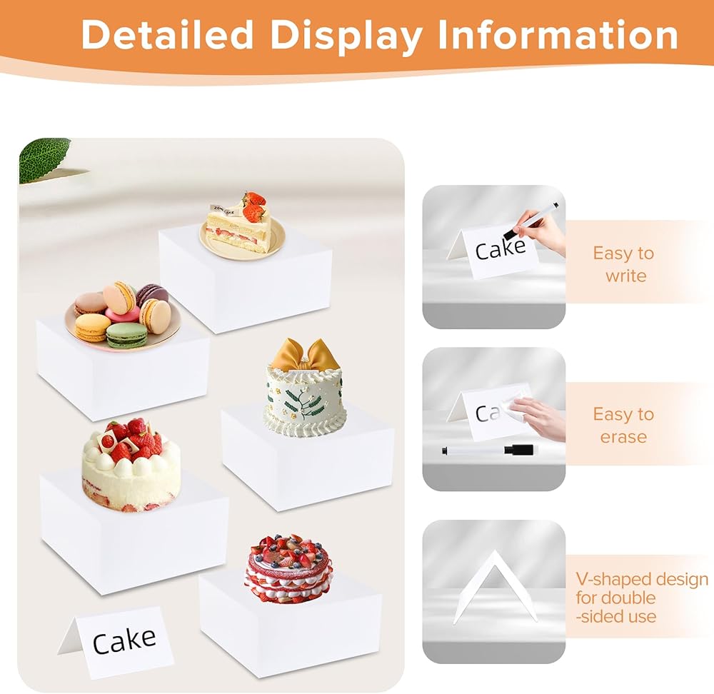 سهلة الاستخدام: صناديق الأكريليك البيضاء لعرض الطعام خفيفة الوزن وصغيرة الحجم بشكل عام، وسهلة الوضع والاستخدام، وهي خيار رائع لمساعدتك على عرض أغراضك في جميع الاتجاهات. مجموعة عرض طاولة الحلوى تأتي مع 6 بطاقات للطاولة وقلمين قابلين للمسح. ، يبلغ قياس علامات الجدول 3.94 × 3.11 بوصة، ولن تشغل مساحة كبيرة للعرض. يمكن وضعها بجوار صندوق العرض لإظهار معلومات منتجك والسماح للعملاء بفهم منتجاتك بشكل أكثر بصريًا