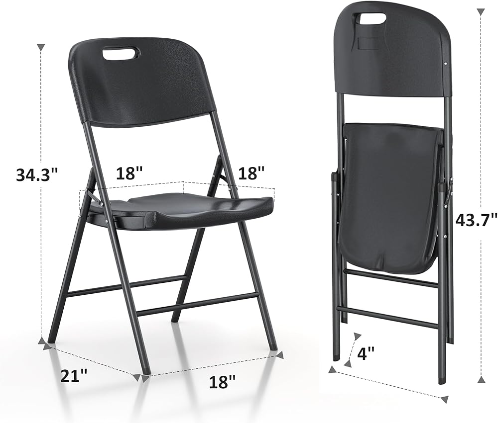 Space-Saving Solution: These foldable guest chairs are easy to fold and unfold, with folded dimensions of 43.7 x 18.1 x 6 inches, making them compact enough for storage in tight areas like closets or car trunks. They pair seamlessly with any tables, offering a complete setup for events and everyday use.
