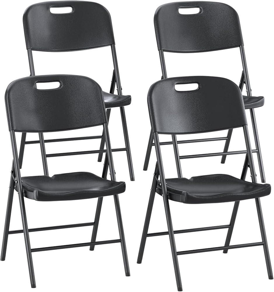 مجموعة من 4 كراسي قابلة للطي من VECELO، بلاستيك محمول قابل للطي مع إطار فولاذي للمناسبات الداخلية والخارجية، المكتب، الزفاف، الحفلات، سعة 350 رطل، أسود غير لامع